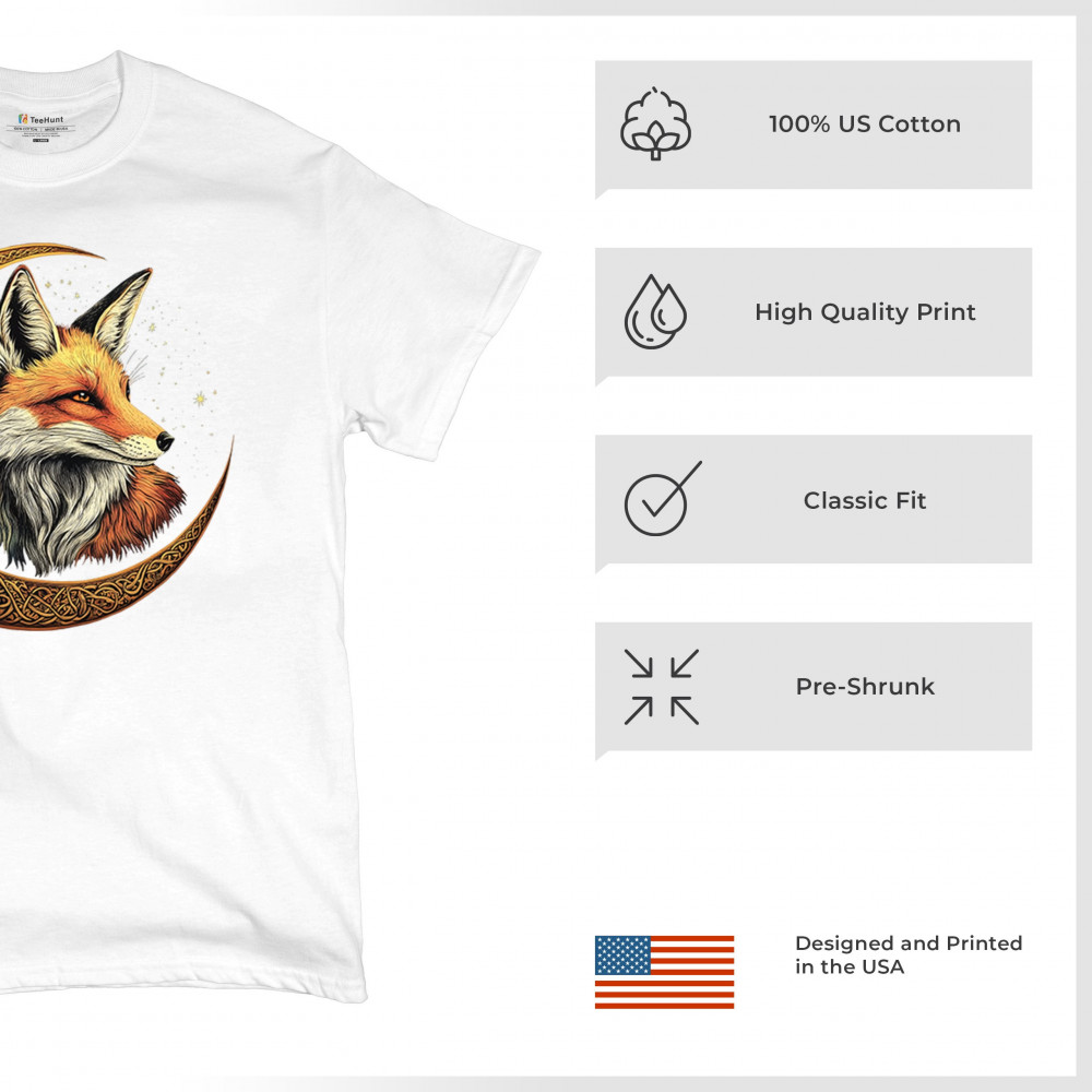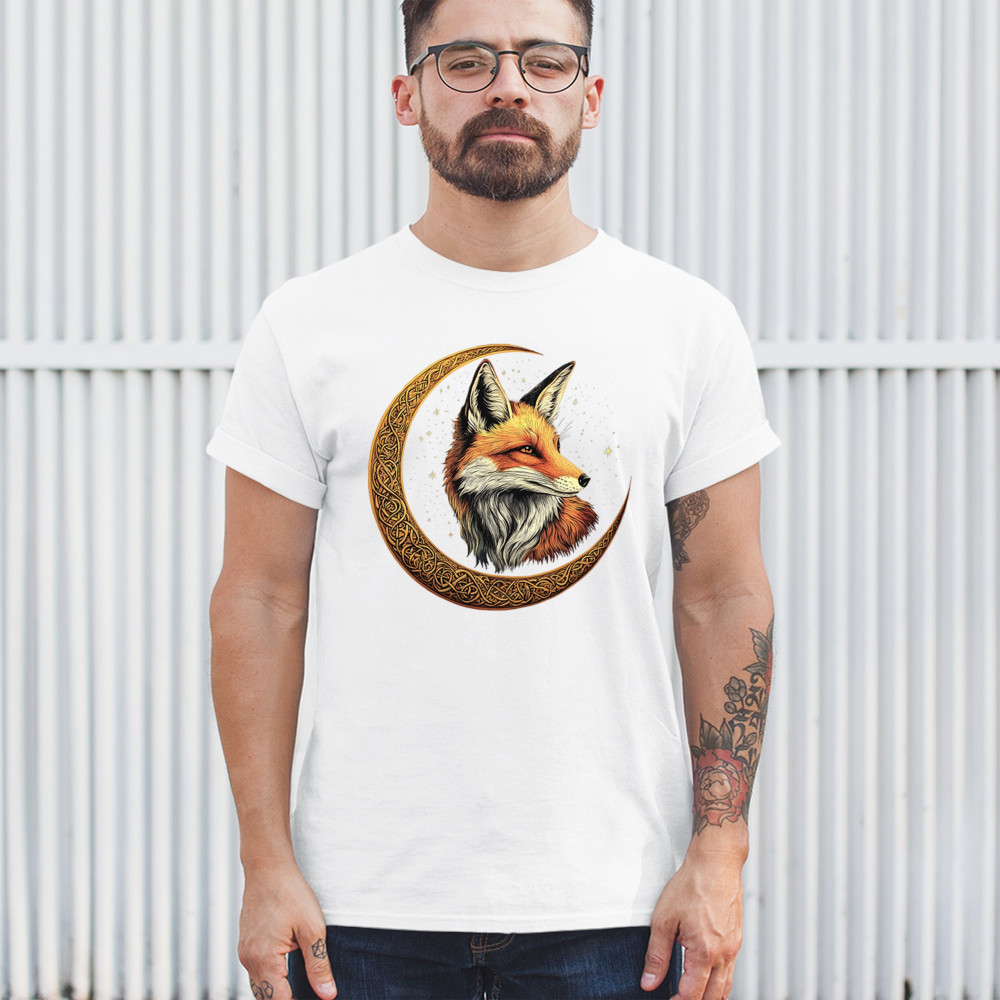 Embrace the spirit of the forest with this striking red fox framed by a golden Celtic crescent moon. The design blends animal symbolism with cosmic wonder, showcasing intuition, cleverness, and spiritual insight. A perfect match for nature lovers, folklore fans, mystics, and metaphysical art enthusiasts.