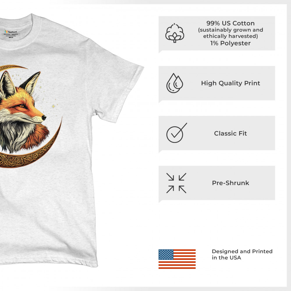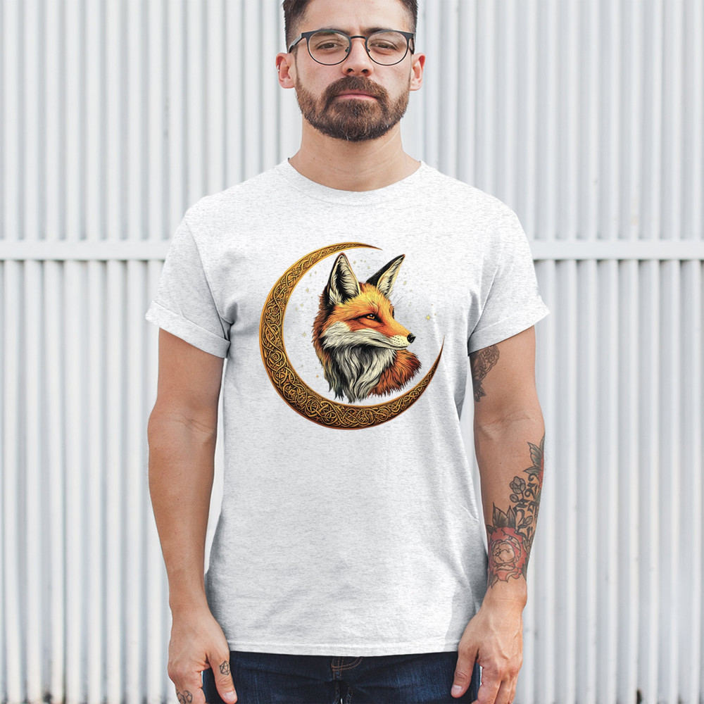 Embrace the spirit of the forest with this striking red fox framed by a golden Celtic crescent moon. The design blends animal symbolism with cosmic wonder, showcasing intuition, cleverness, and spiritual insight. A perfect match for nature lovers, folklore fans, mystics, and metaphysical art enthusiasts.