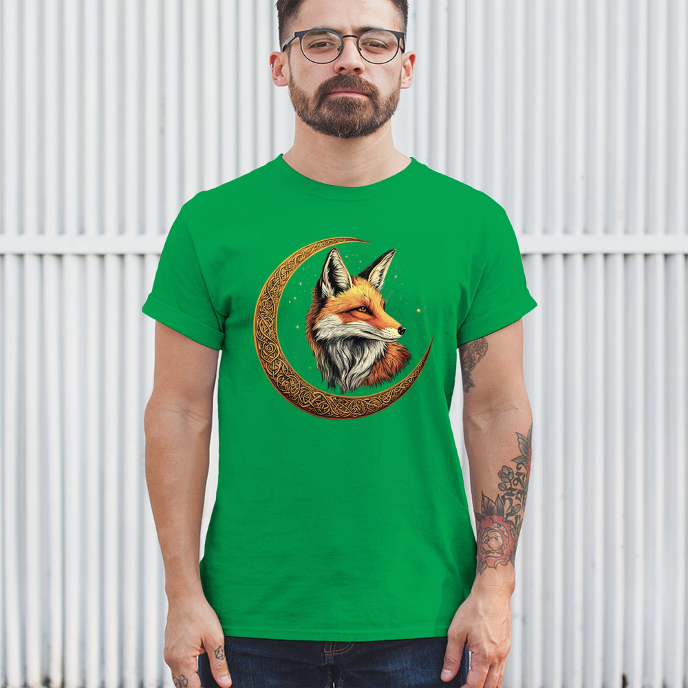 Embrace the spirit of the forest with this striking red fox framed by a golden Celtic crescent moon. The design blends animal symbolism with cosmic wonder, showcasing intuition, cleverness, and spiritual insight. A perfect match for nature lovers, folklore fans, mystics, and metaphysical art enthusiasts.