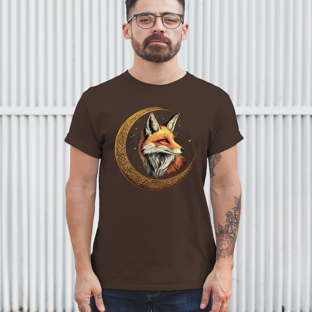 Embrace the spirit of the forest with this striking red fox framed by a golden Celtic crescent moon. The design blends animal symbolism with cosmic wonder, showcasing intuition, cleverness, and spiritual insight. A perfect match for nature lovers, folklore fans, mystics, and metaphysical art enthusiasts.