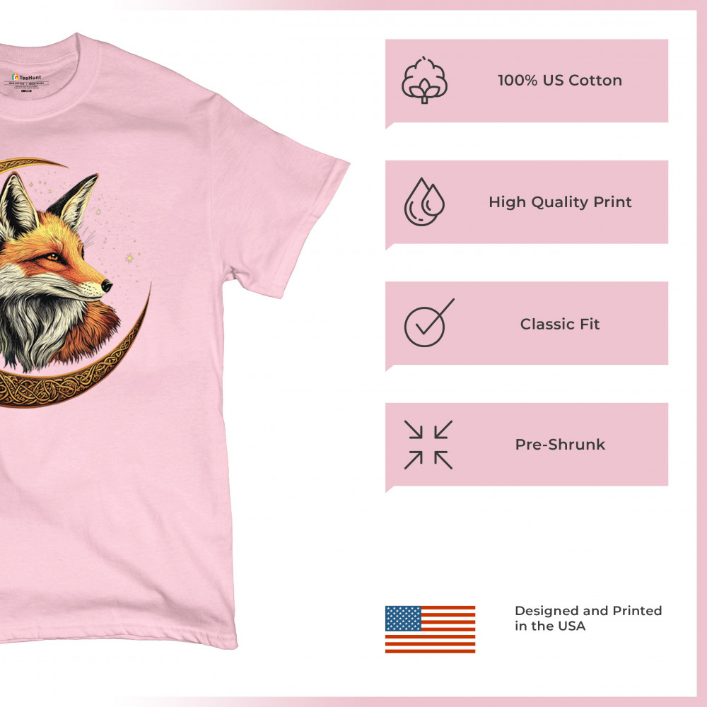 Embrace the spirit of the forest with this striking red fox framed by a golden Celtic crescent moon. The design blends animal symbolism with cosmic wonder, showcasing intuition, cleverness, and spiritual insight. A perfect match for nature lovers, folklore fans, mystics, and metaphysical art enthusiasts.