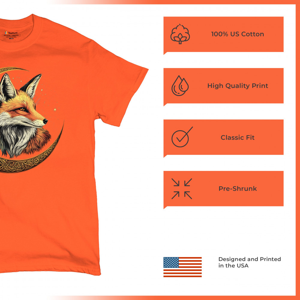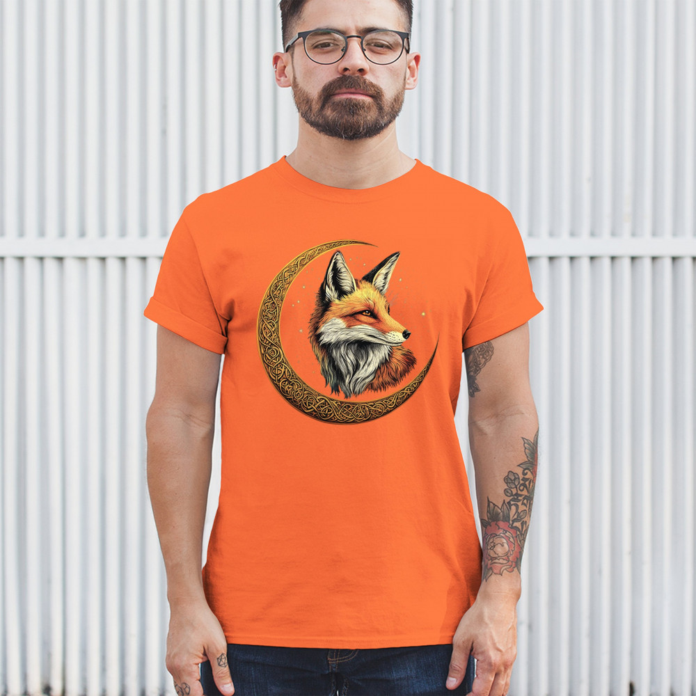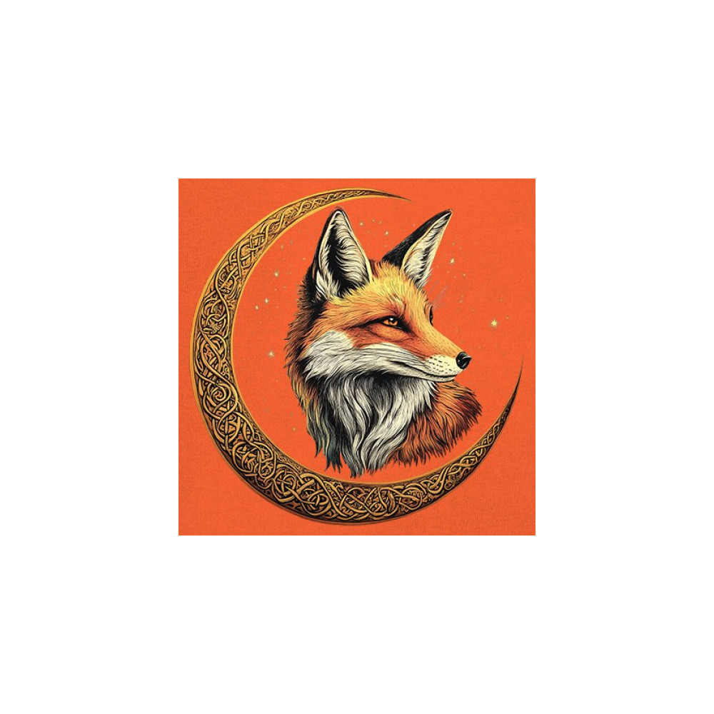 Embrace the spirit of the forest with this striking red fox framed by a golden Celtic crescent moon. The design blends animal symbolism with cosmic wonder, showcasing intuition, cleverness, and spiritual insight. A perfect match for nature lovers, folklore fans, mystics, and metaphysical art enthusiasts.