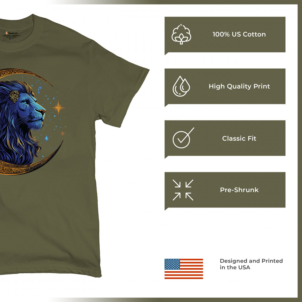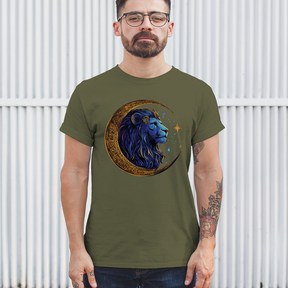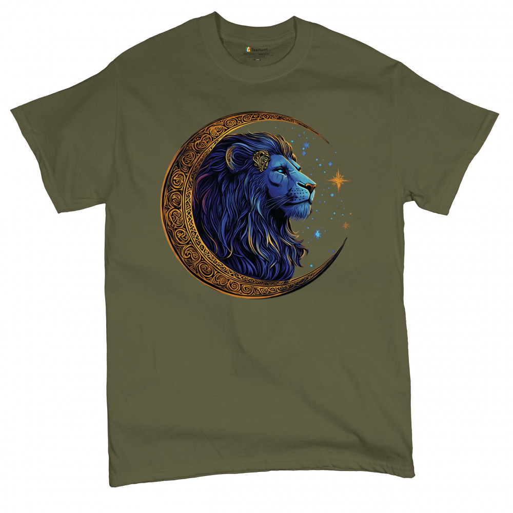 Majestic lion in Celtic crescent moon design—ideal for Leos, fantasy fans, and spiritual seekers drawn to strength and celestial symbolism.