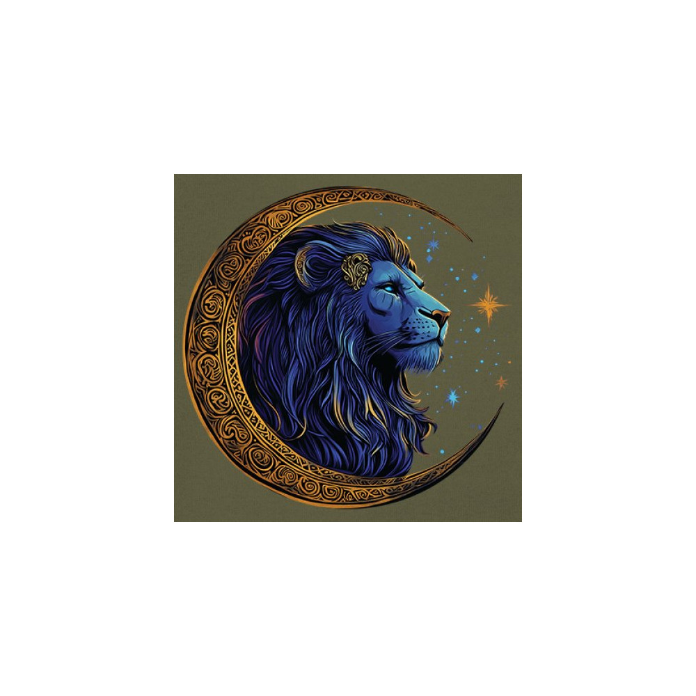 This celestial lion design features a majestic mane framed by a golden Celtic crescent moon, symbolizing leadership, courage, and wild spirit. Perfect for Leo zodiac signs, mystic seekers, and fantasy fans, this artwork blends tribal symbolism, cosmic energy, and regal power in one visually stunning tribute to inner strength.