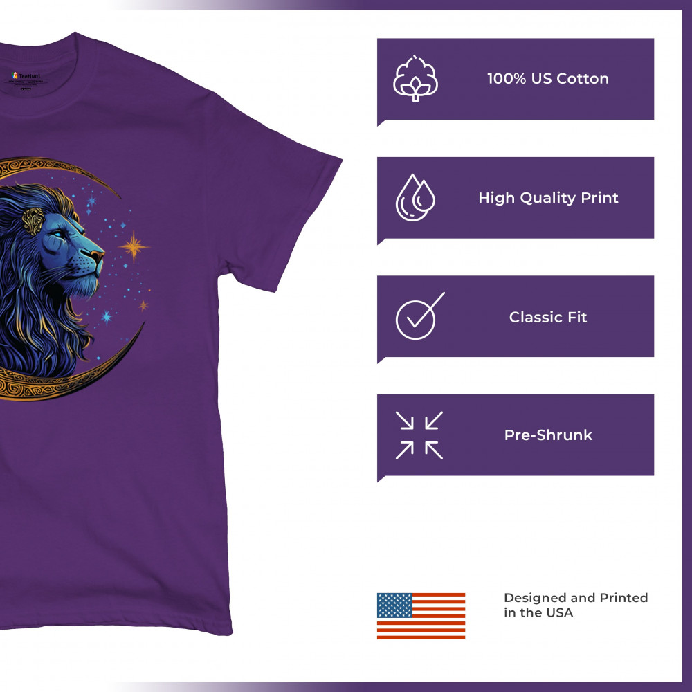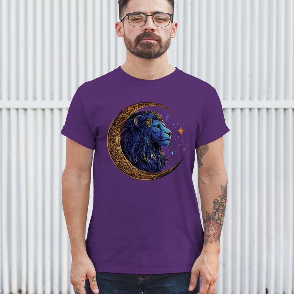 Majestic lion in Celtic crescent moon design—ideal for Leos, fantasy fans, and spiritual seekers drawn to strength and celestial symbolism.