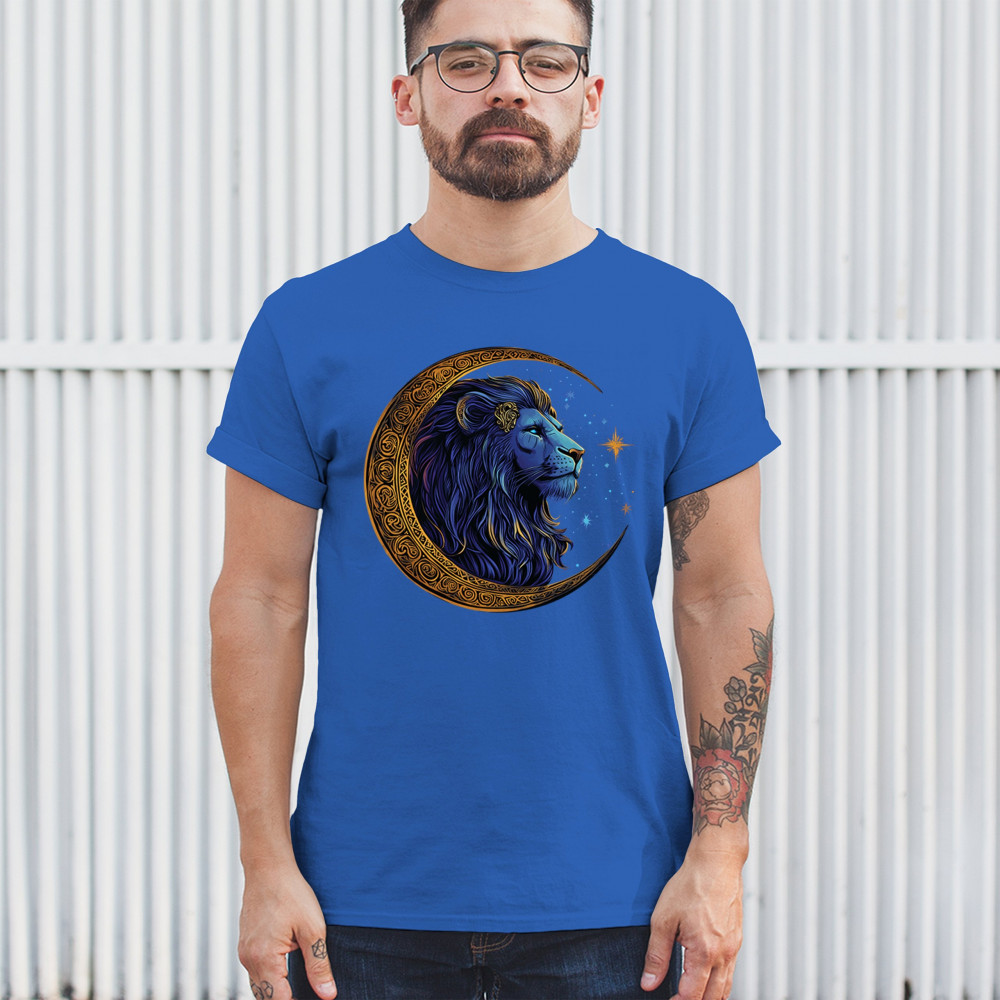 This celestial lion design features a majestic mane framed by a golden Celtic crescent moon, symbolizing leadership, courage, and wild spirit. Perfect for Leo zodiac signs, mystic seekers, and fantasy fans, this artwork blends tribal symbolism, cosmic energy, and regal power in one visually stunning tribute to inner strength.