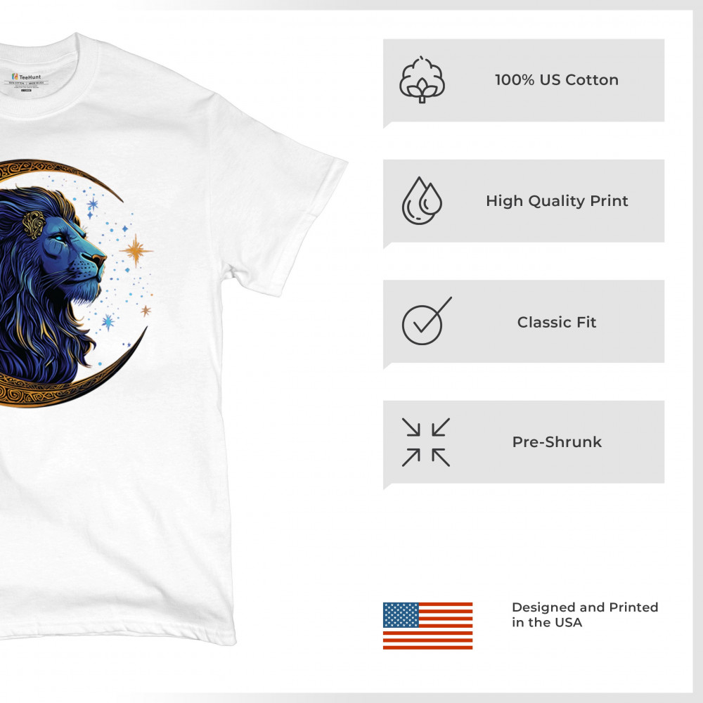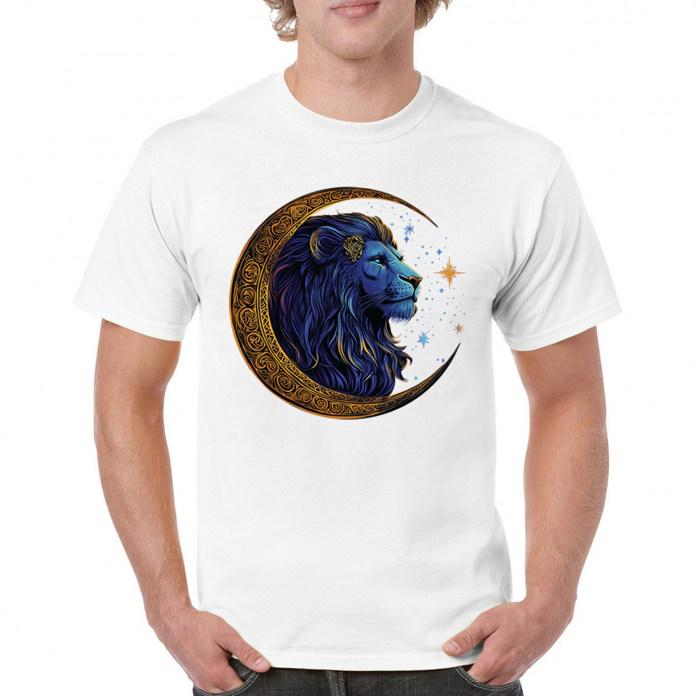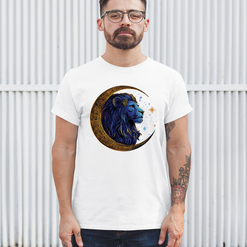 This celestial lion design features a majestic mane framed by a golden Celtic crescent moon, symbolizing leadership, courage, and wild spirit. Perfect for Leo zodiac signs, mystic seekers, and fantasy fans, this artwork blends tribal symbolism, cosmic energy, and regal power in one visually stunning tribute to inner strength.