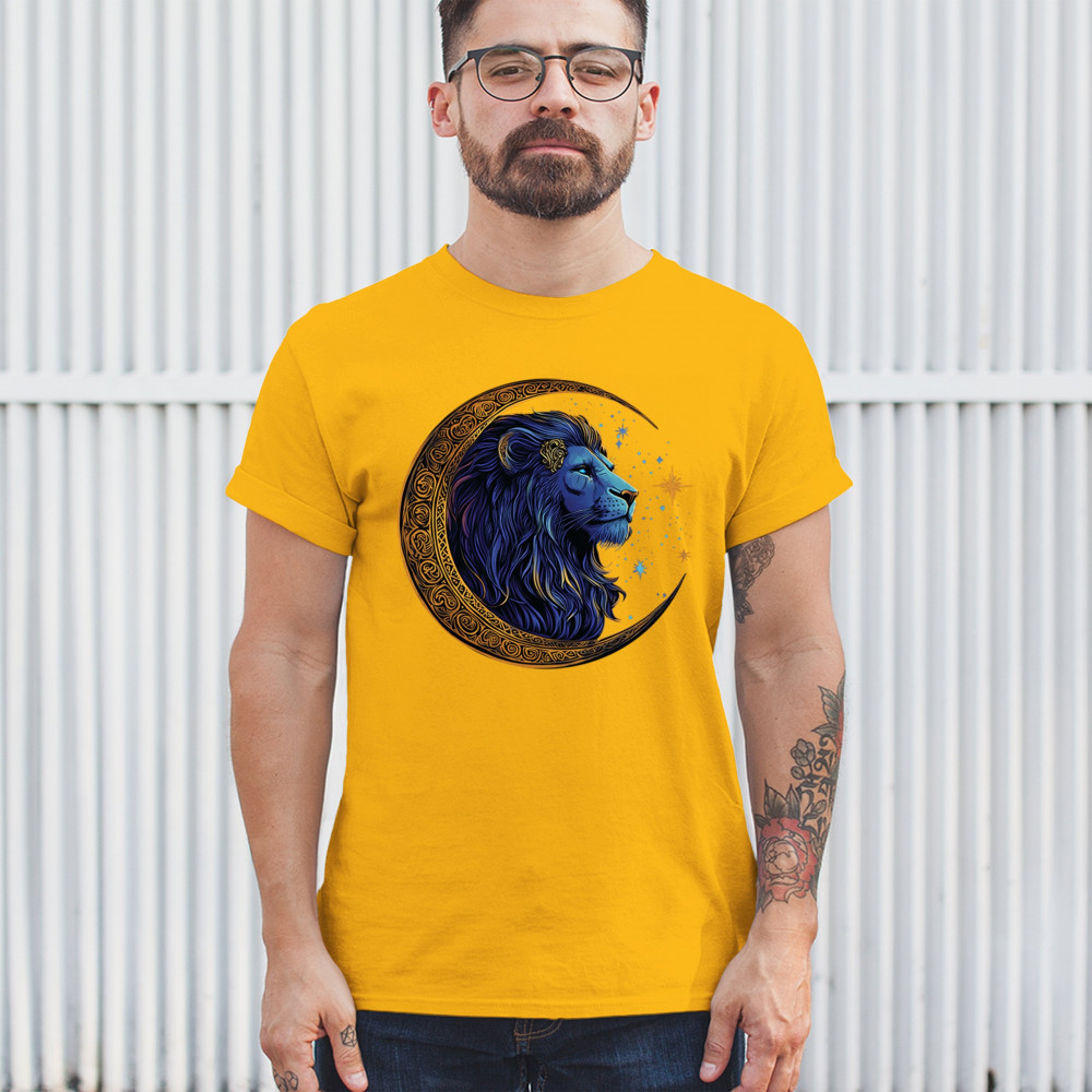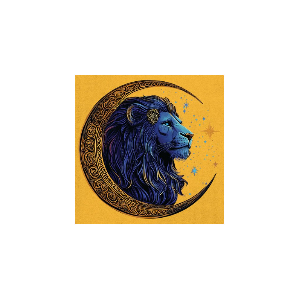 This celestial lion design features a majestic mane framed by a golden Celtic crescent moon, symbolizing leadership, courage, and wild spirit. Perfect for Leo zodiac signs, mystic seekers, and fantasy fans, this artwork blends tribal symbolism, cosmic energy, and regal power in one visually stunning tribute to inner strength.