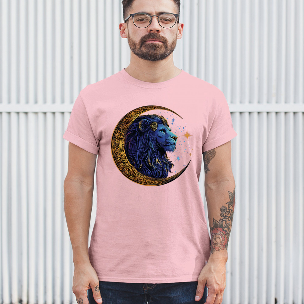 Majestic lion in Celtic crescent moon design—ideal for Leos, fantasy fans, and spiritual seekers drawn to strength and celestial symbolism.