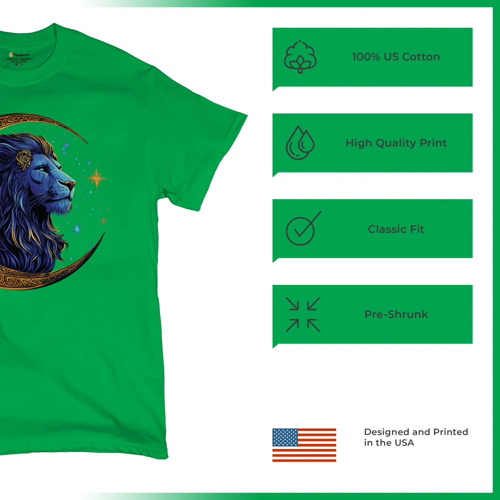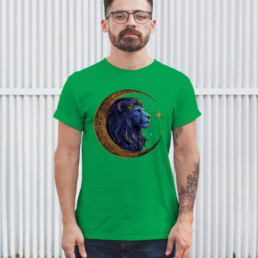 This celestial lion design features a majestic mane framed by a golden Celtic crescent moon, symbolizing leadership, courage, and wild spirit. Perfect for Leo zodiac signs, mystic seekers, and fantasy fans, this artwork blends tribal symbolism, cosmic energy, and regal power in one visually stunning tribute to inner strength.