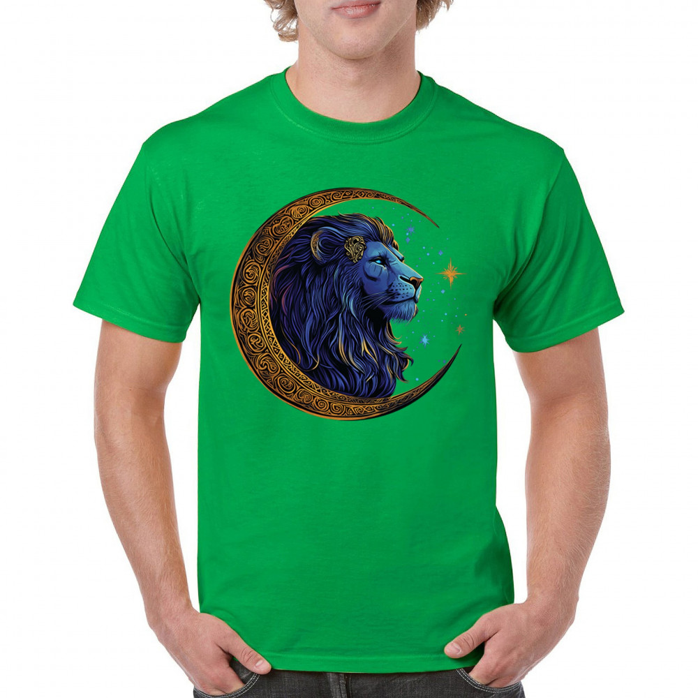 Majestic lion in Celtic crescent moon design—ideal for Leos, fantasy fans, and spiritual seekers drawn to strength and celestial symbolism.