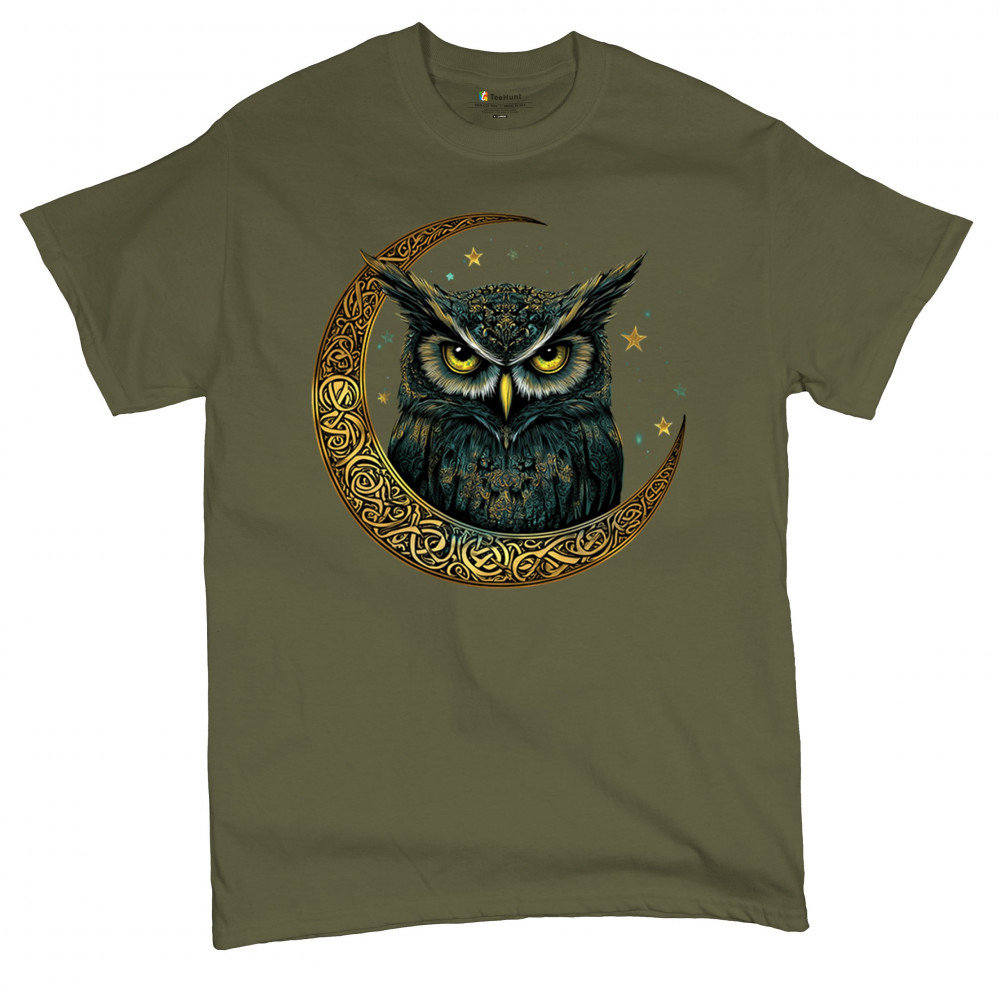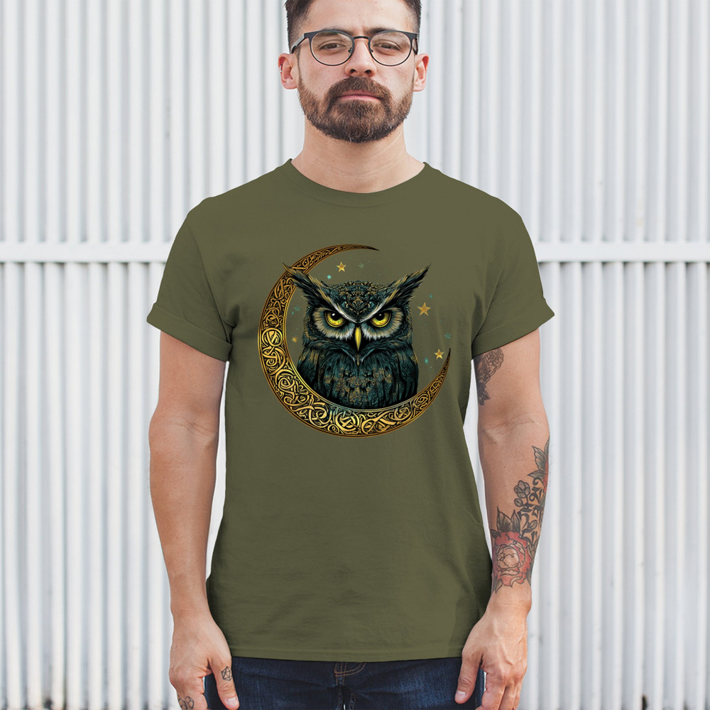 Cosmic owl in Celtic crescent moon—symbol of wisdom, night mystery, and spirit. Perfect for mystics, owl lovers, and fantasy fans.