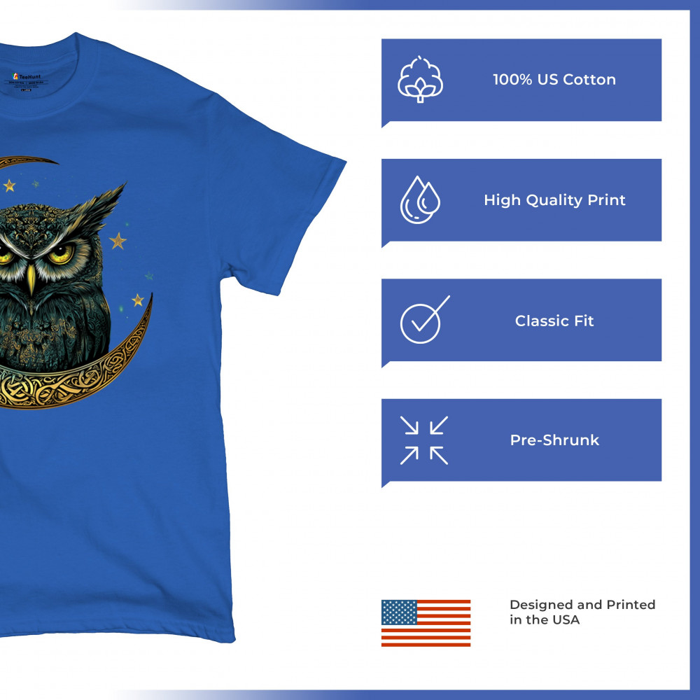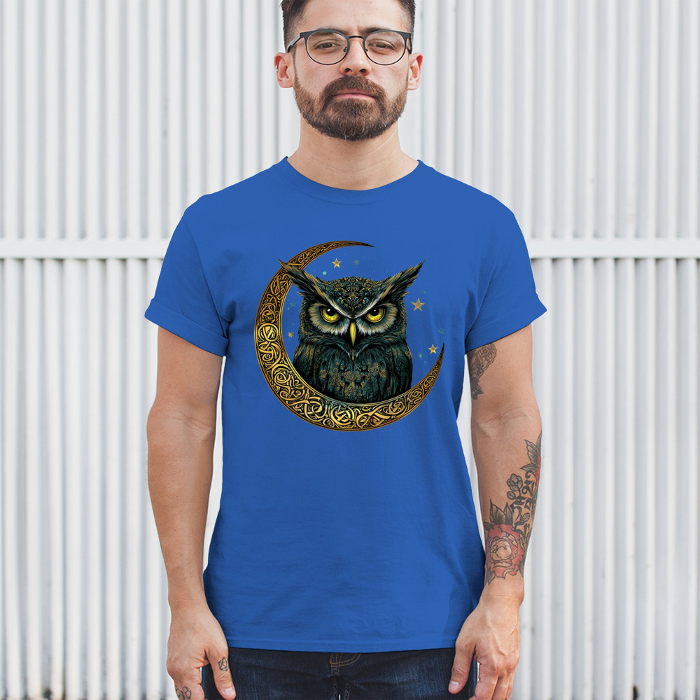 Cosmic owl in Celtic crescent moon—symbol of wisdom, night mystery, and spirit. Perfect for mystics, owl lovers, and fantasy fans.
