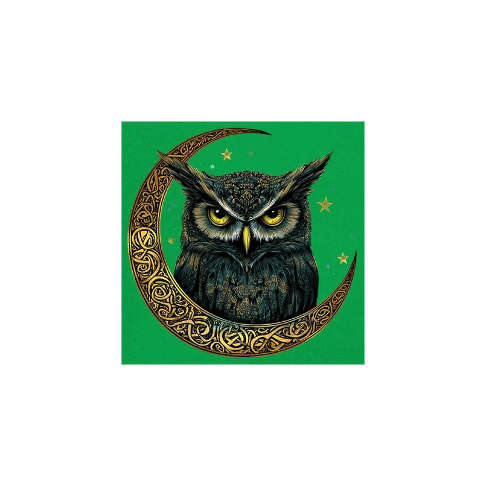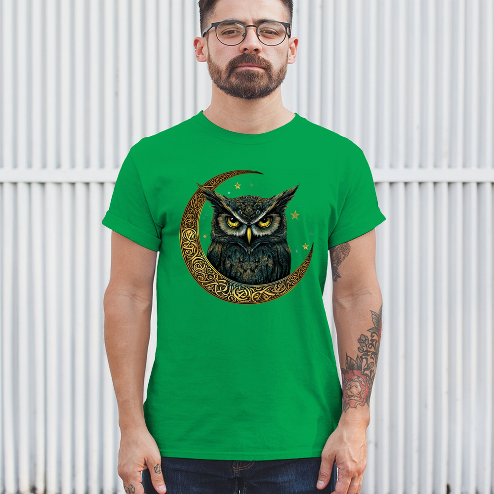 Cosmic owl in Celtic crescent moon—symbol of wisdom, night mystery, and spirit. Perfect for mystics, owl lovers, and fantasy fans.