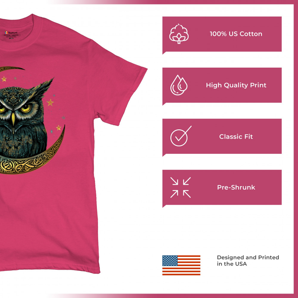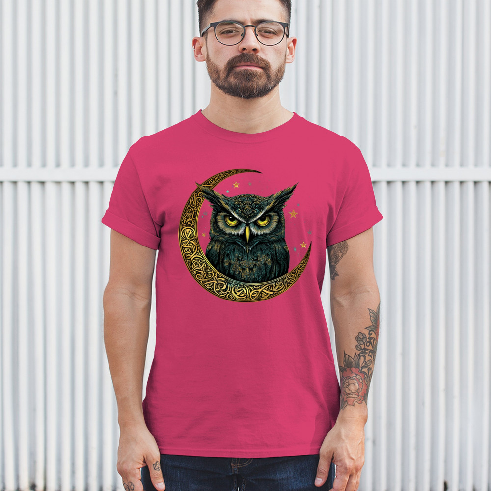 Cosmic owl in Celtic crescent moon—symbol of wisdom, night mystery, and spirit. Perfect for mystics, owl lovers, and fantasy fans.