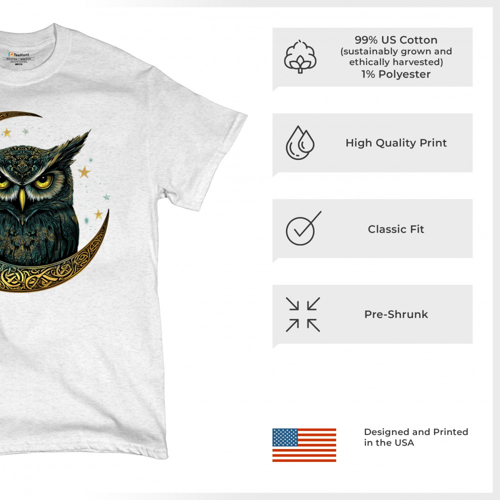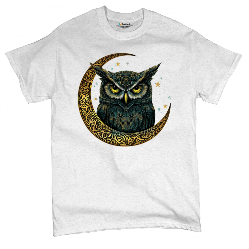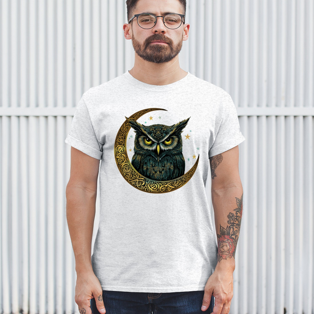 Cosmic owl in Celtic crescent moon—symbol of wisdom, night mystery, and spirit. Perfect for mystics, owl lovers, and fantasy fans.