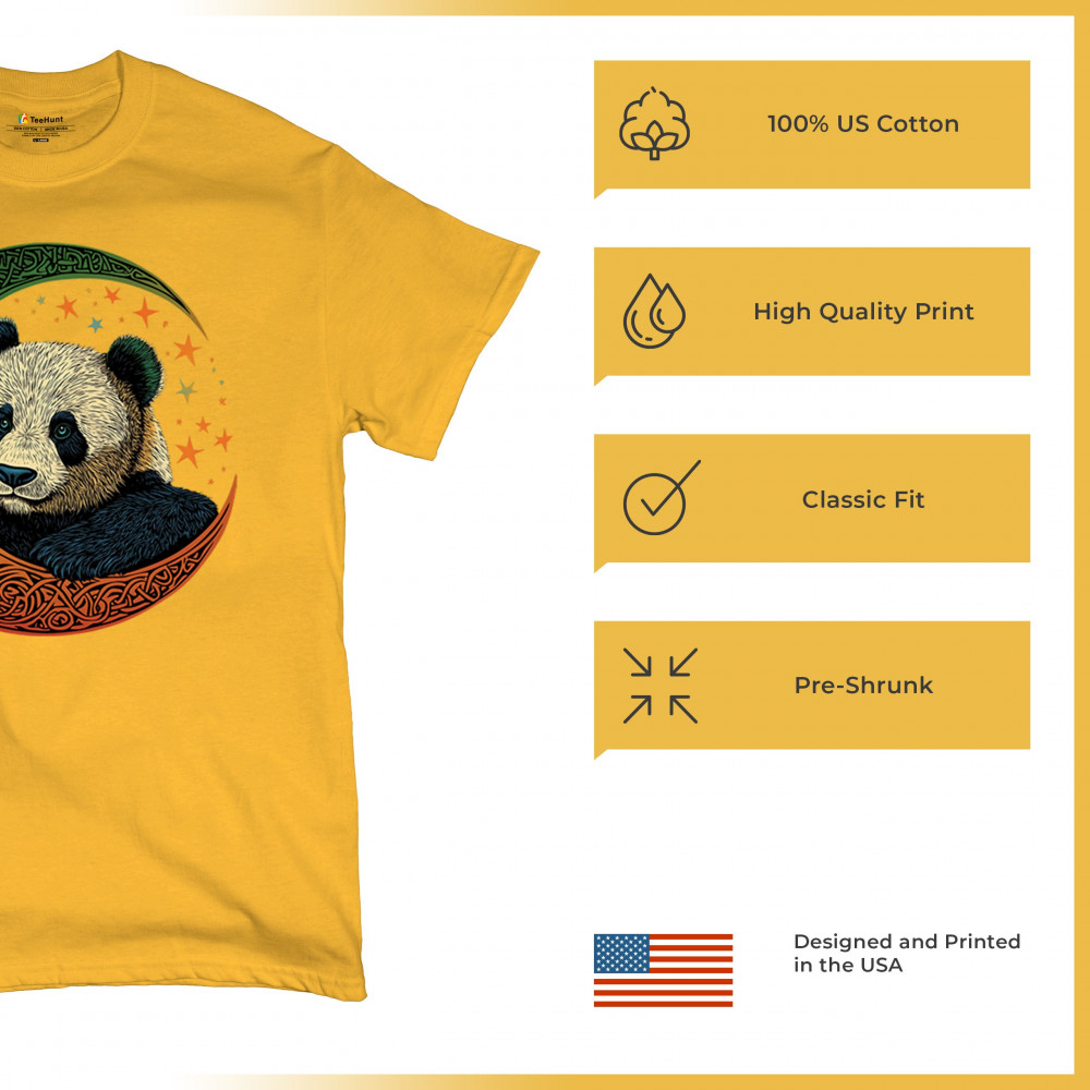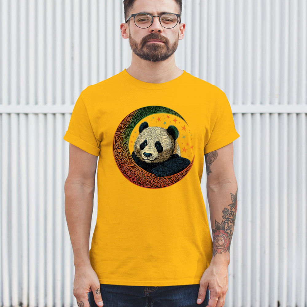 Peaceful panda in Celtic crescent moon design—symbol of harmony, balance, and spiritual calm for nature lovers, mystics, and gentle souls.