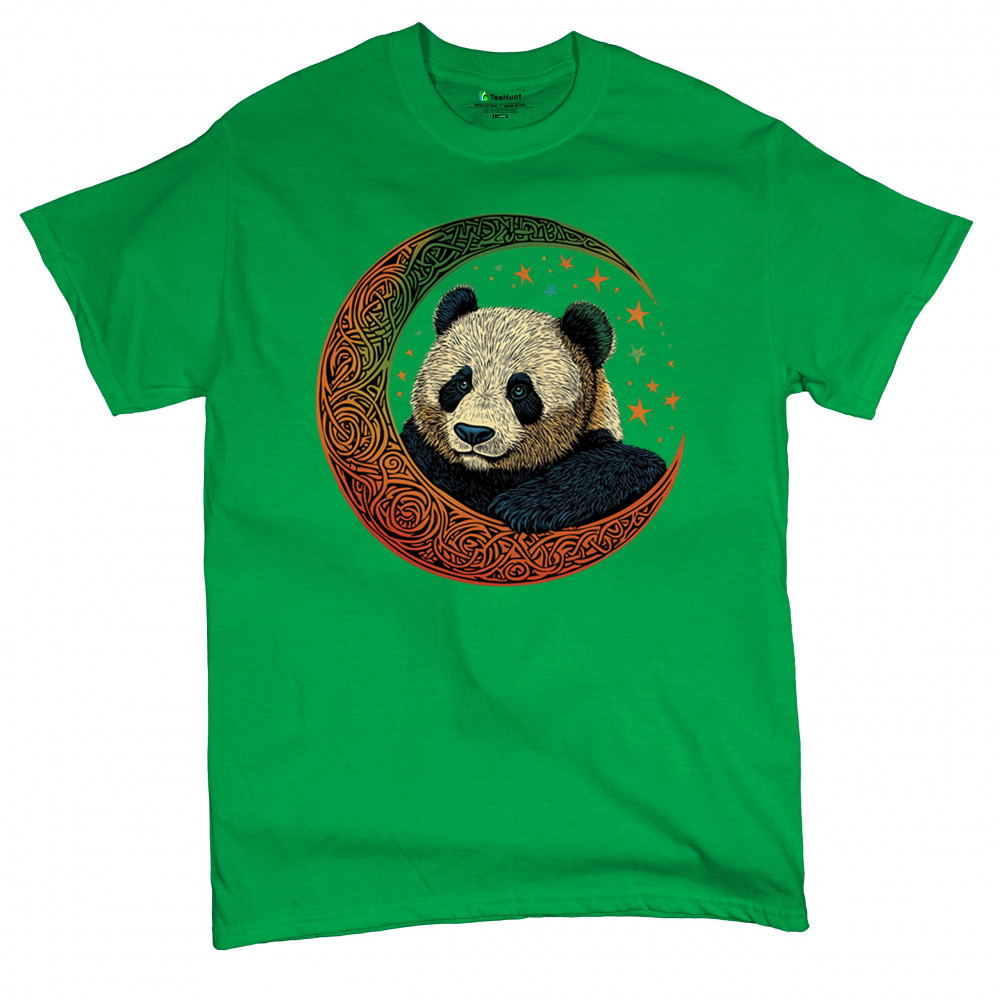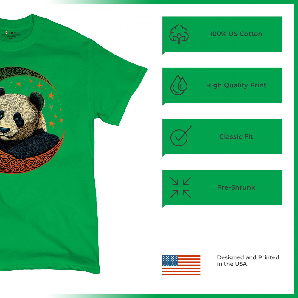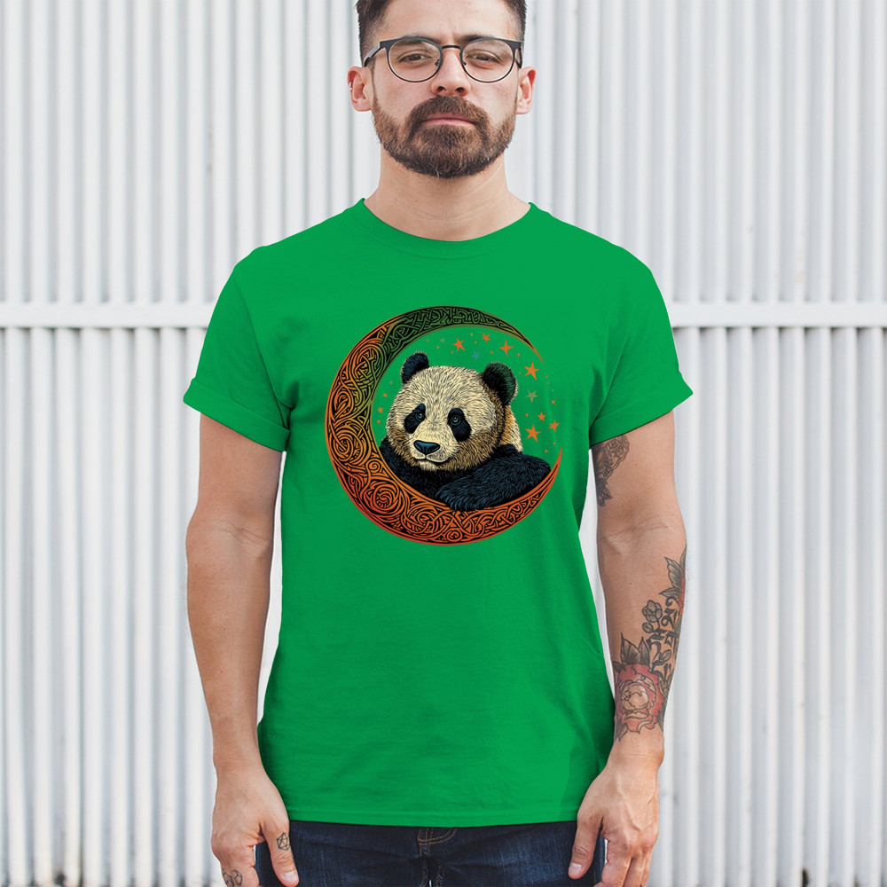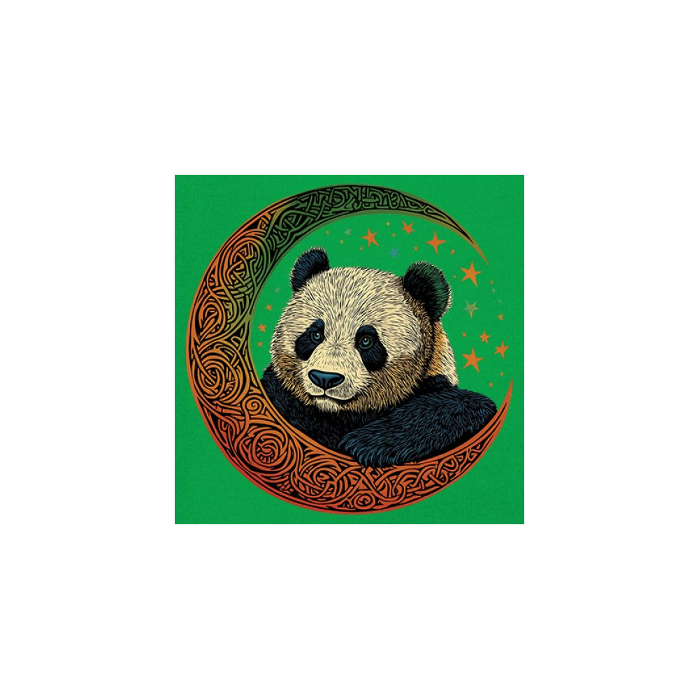 Peaceful panda in Celtic crescent moon design—symbol of harmony, balance, and spiritual calm for nature lovers, mystics, and gentle souls.