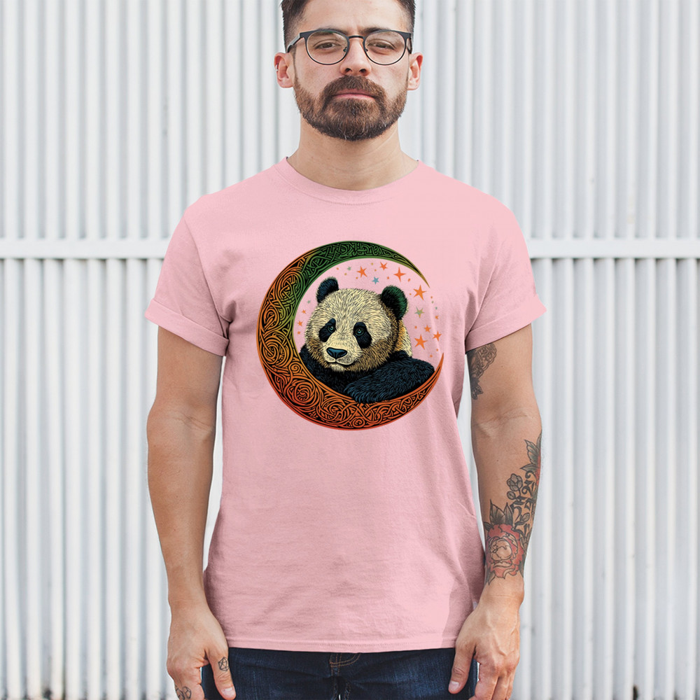 Peaceful panda in Celtic crescent moon design—symbol of harmony, balance, and spiritual calm for nature lovers, mystics, and gentle souls.