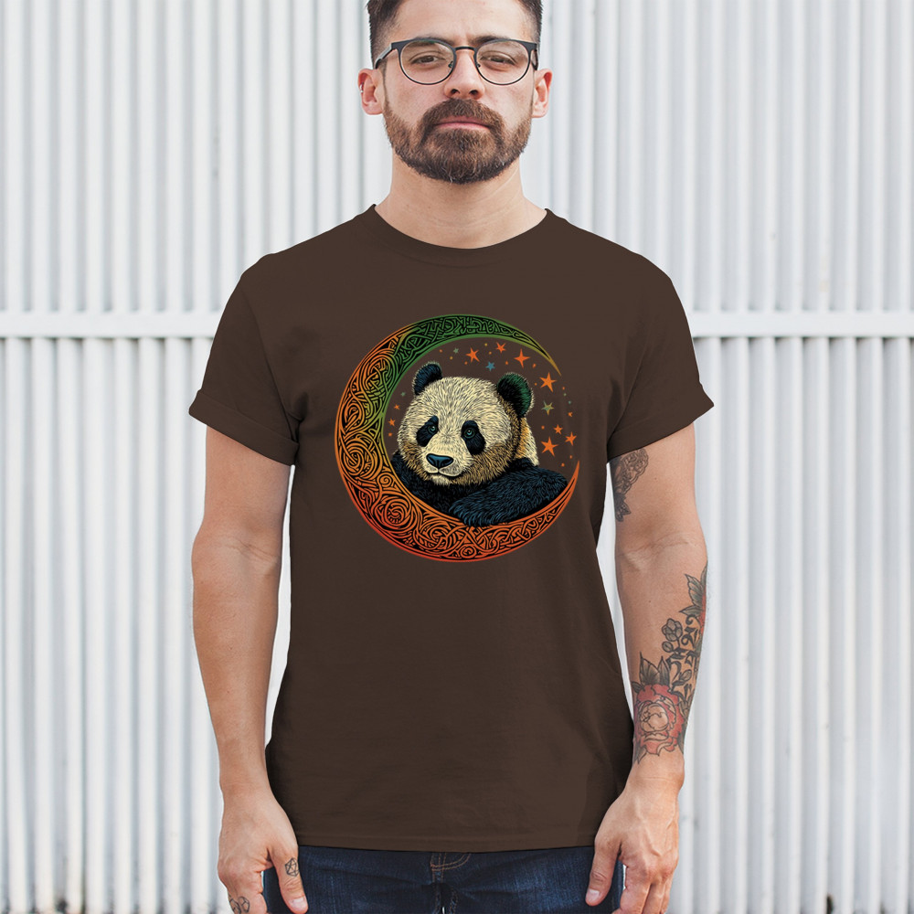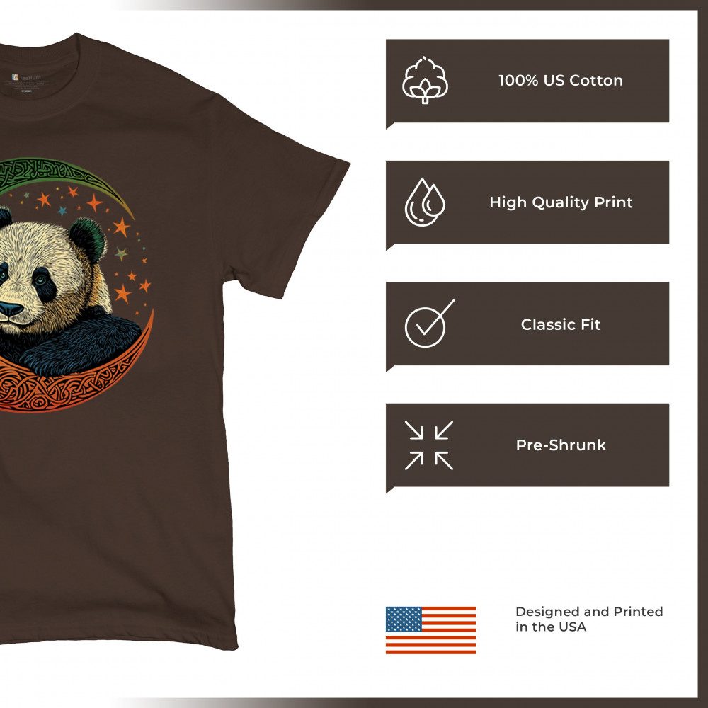 Peaceful panda in Celtic crescent moon design—symbol of harmony, balance, and spiritual calm for nature lovers, mystics, and gentle souls.