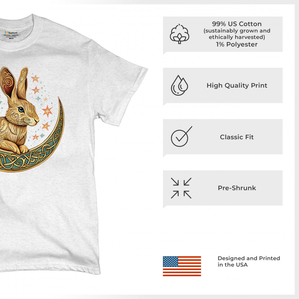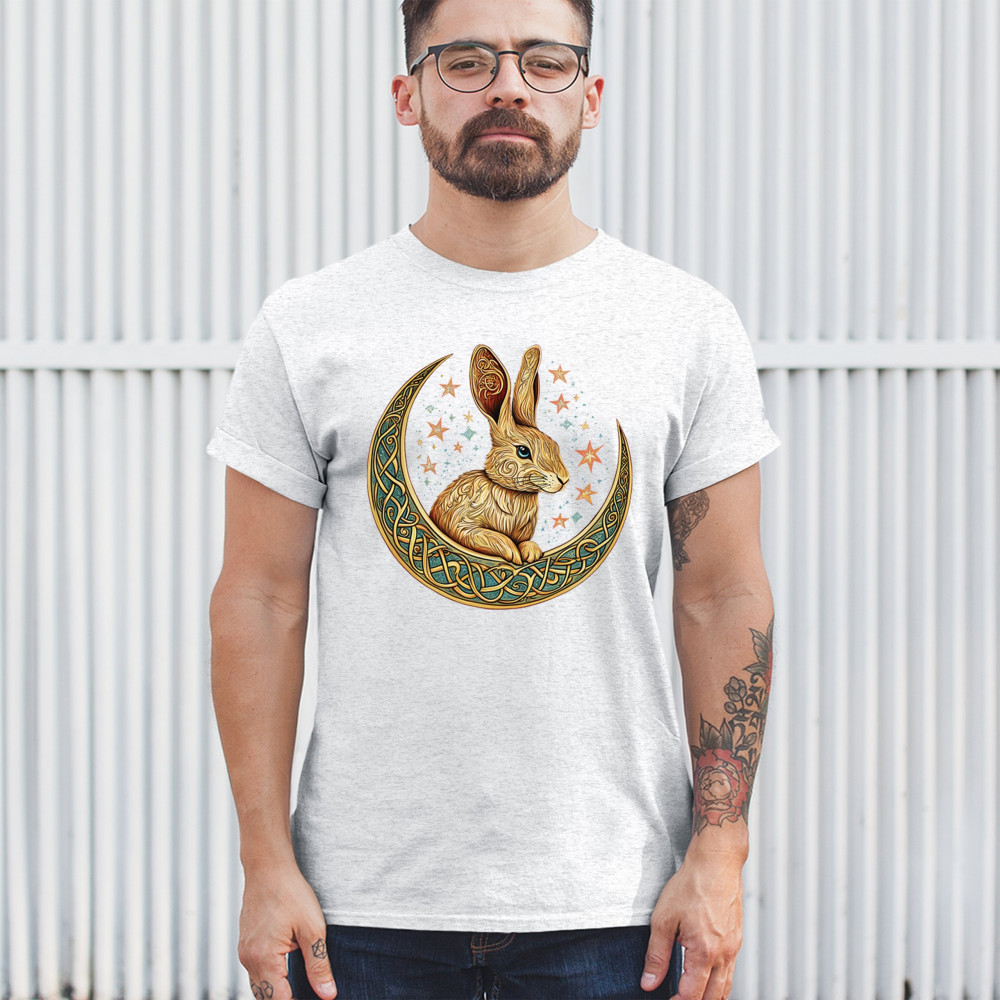 Mystical rabbit in Celtic moon—symbolizing intuition, rebirth, and spring energy. Ideal for fantasy lovers, mystics, and nature fans.
