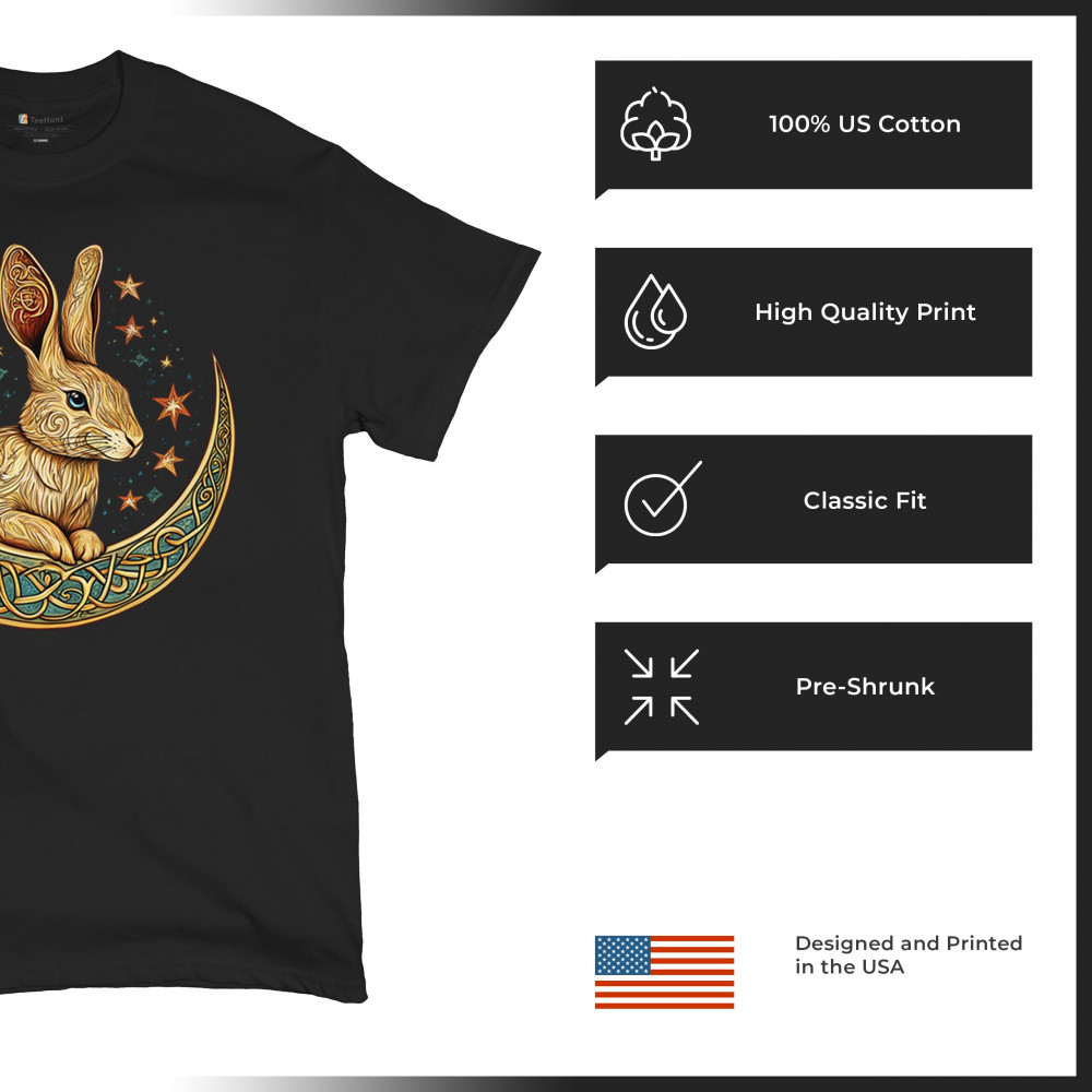 Mystical rabbit in Celtic moon—symbolizing intuition, rebirth, and spring energy. Ideal for fantasy lovers, mystics, and nature fans.