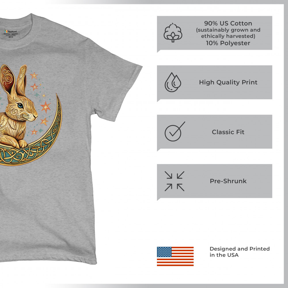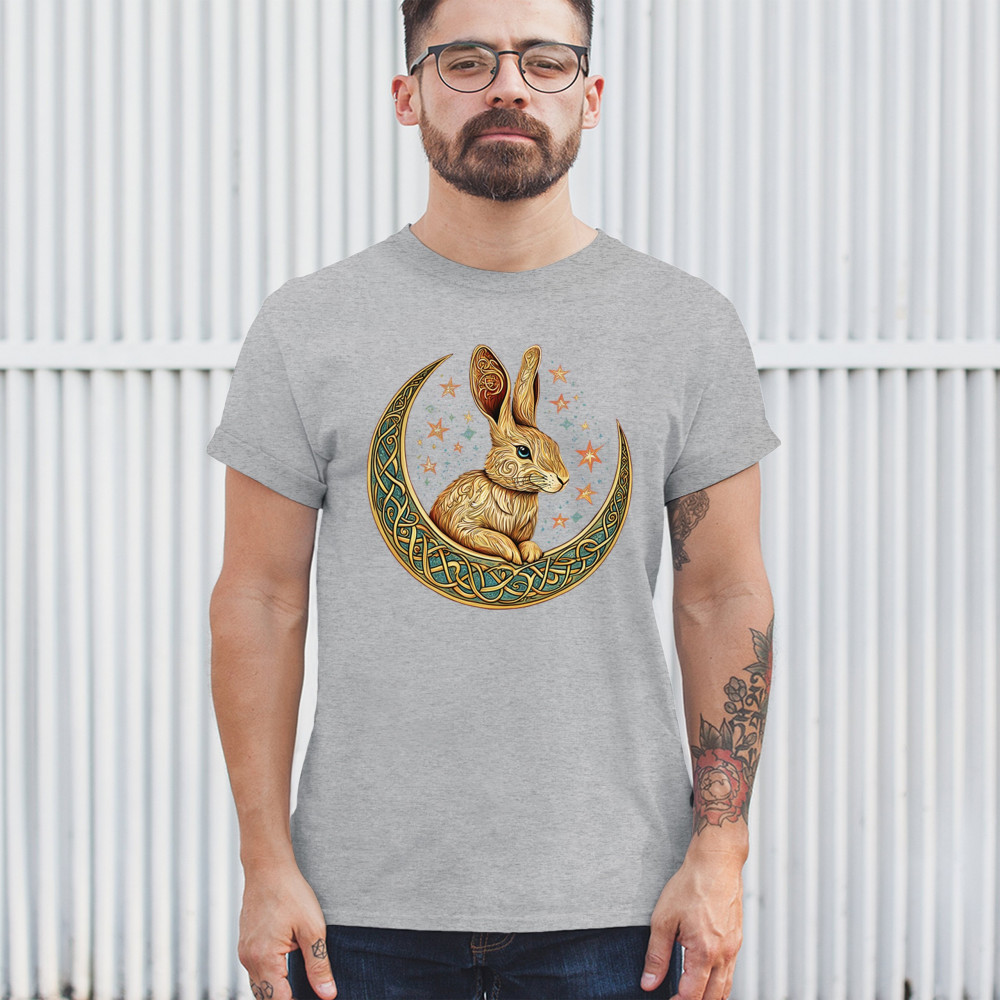 Mystical rabbit in Celtic moon—symbolizing intuition, rebirth, and spring energy. Ideal for fantasy lovers, mystics, and nature fans.