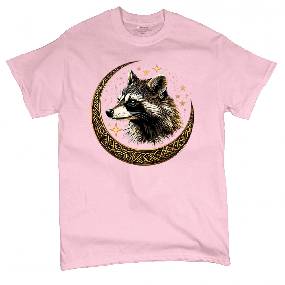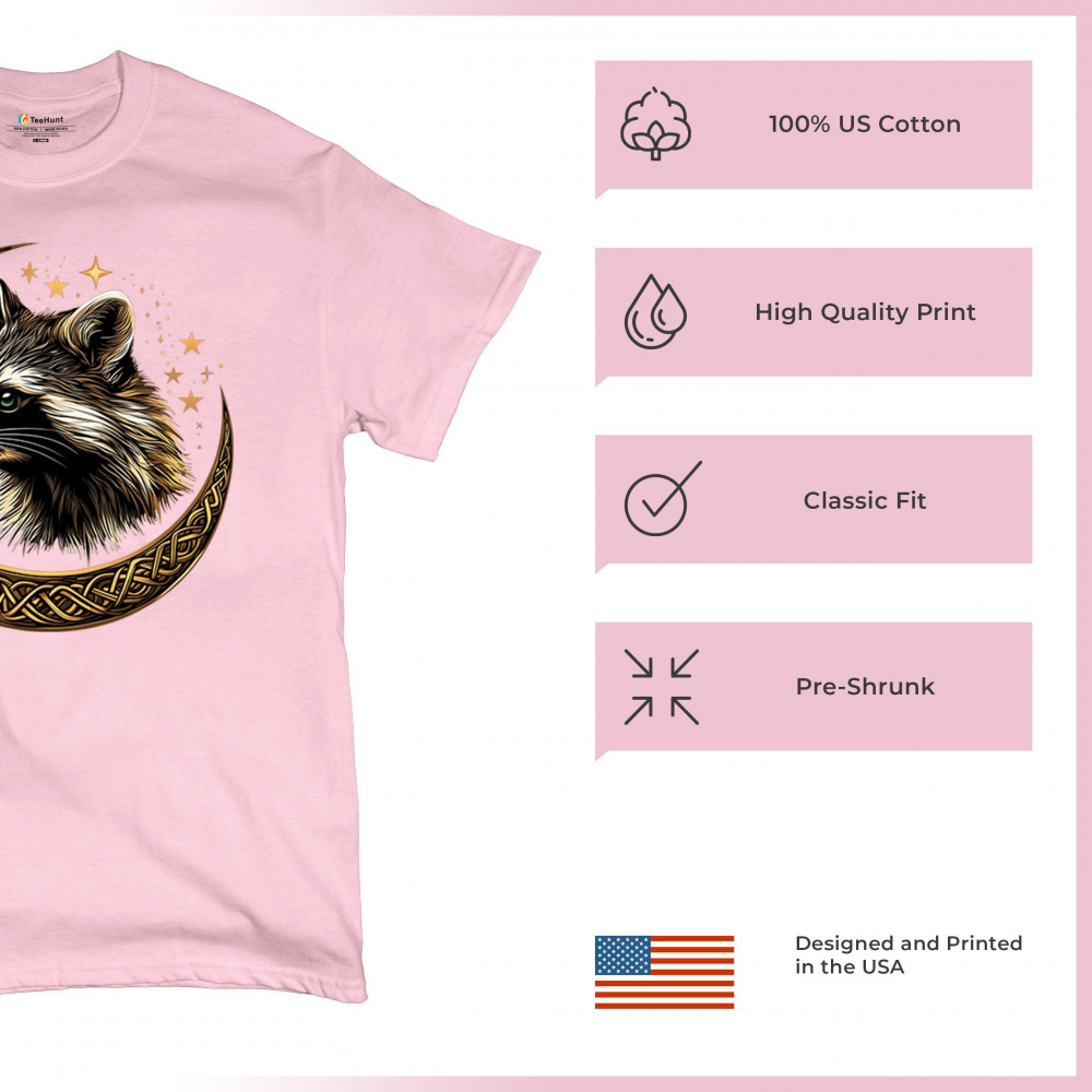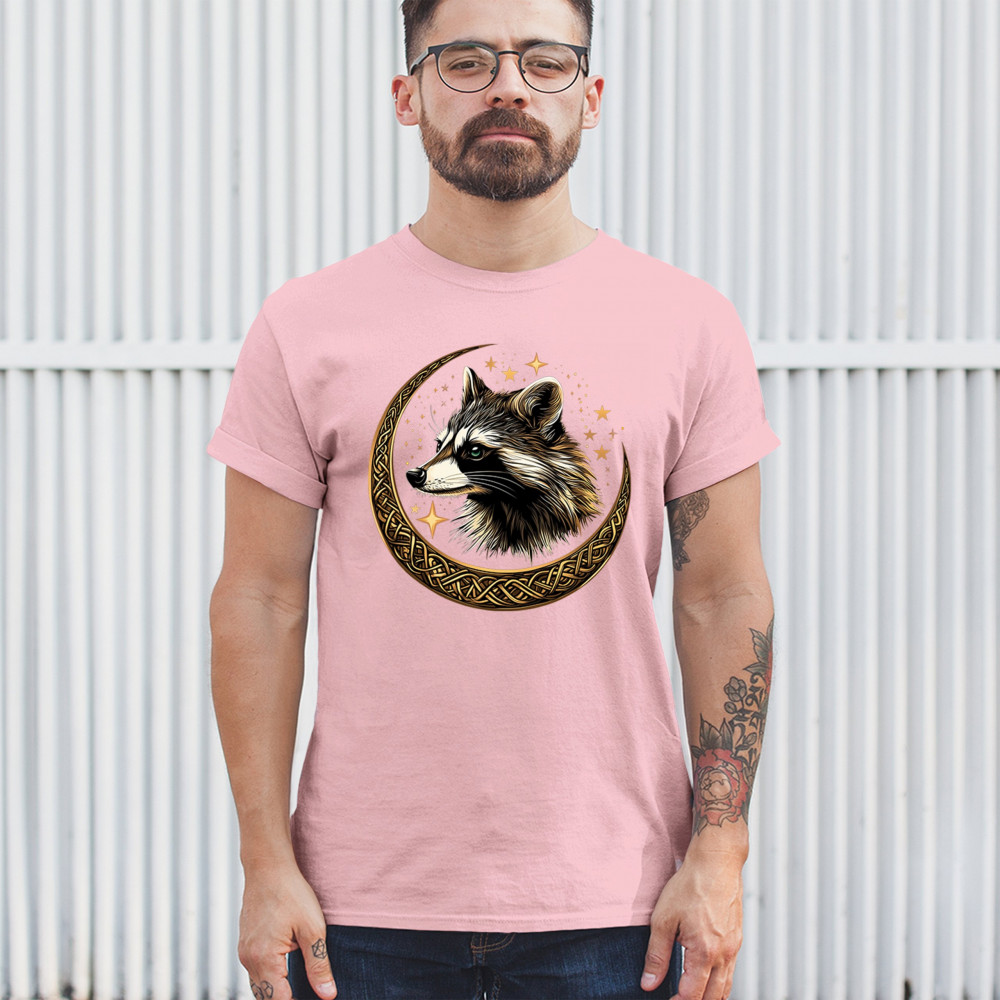 Cosmic raccoon design in Celtic moon. Symbol of adaptability, mystery, and spiritual intelligence. A perfect gift for wild and curious souls.
