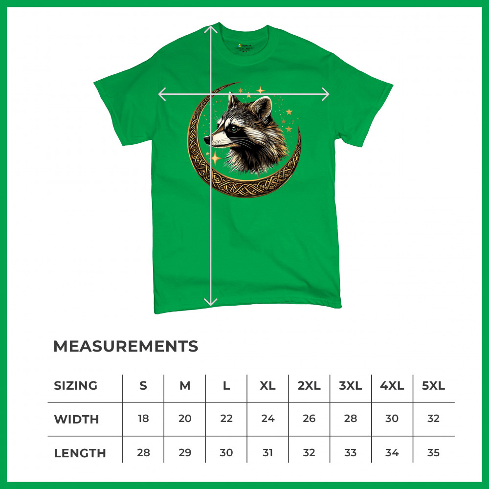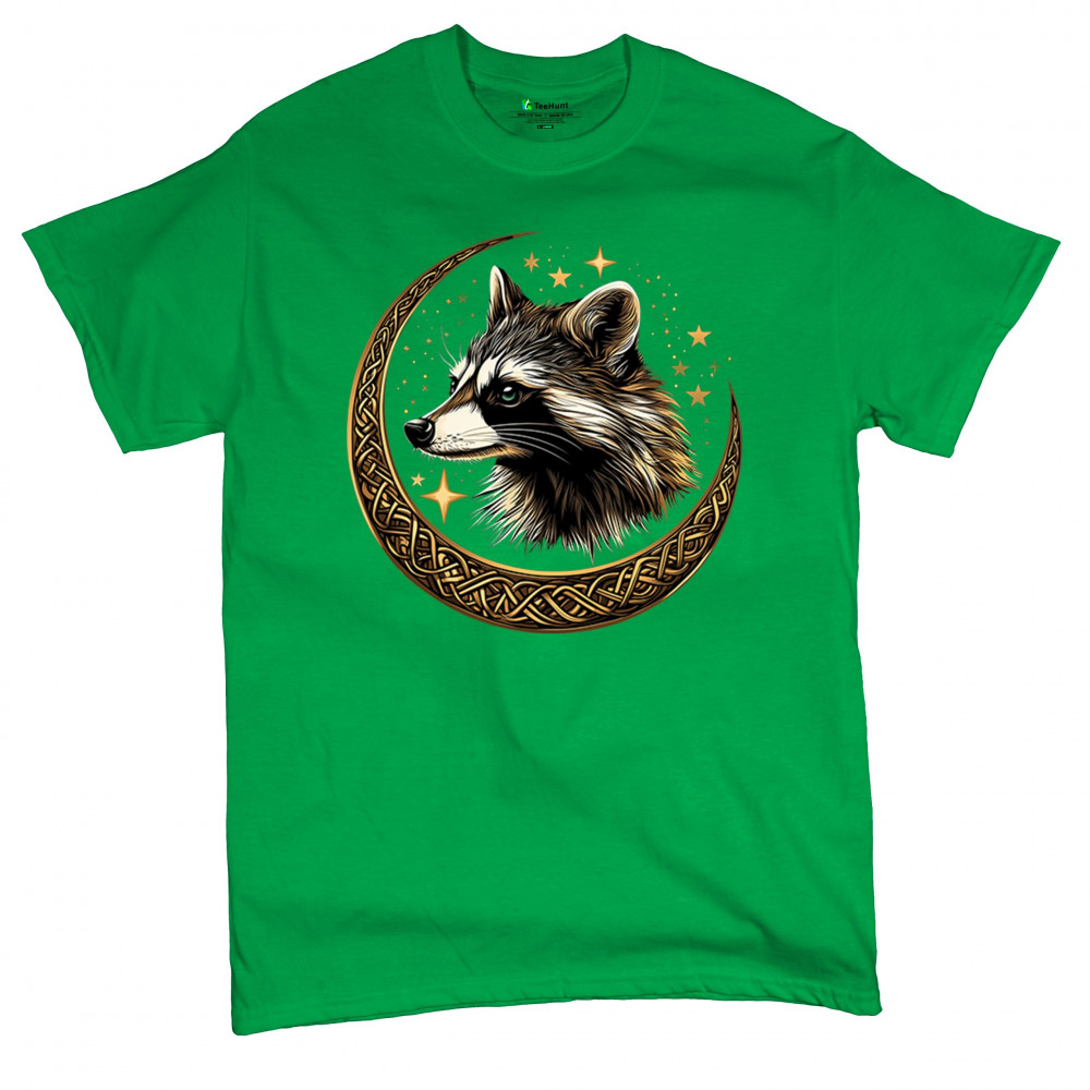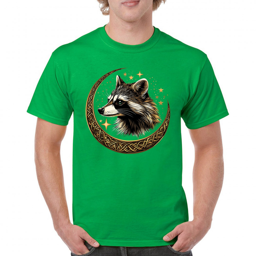 Cosmic raccoon design in Celtic moon. Symbol of adaptability, mystery, and spiritual intelligence. A perfect gift for wild and curious souls.