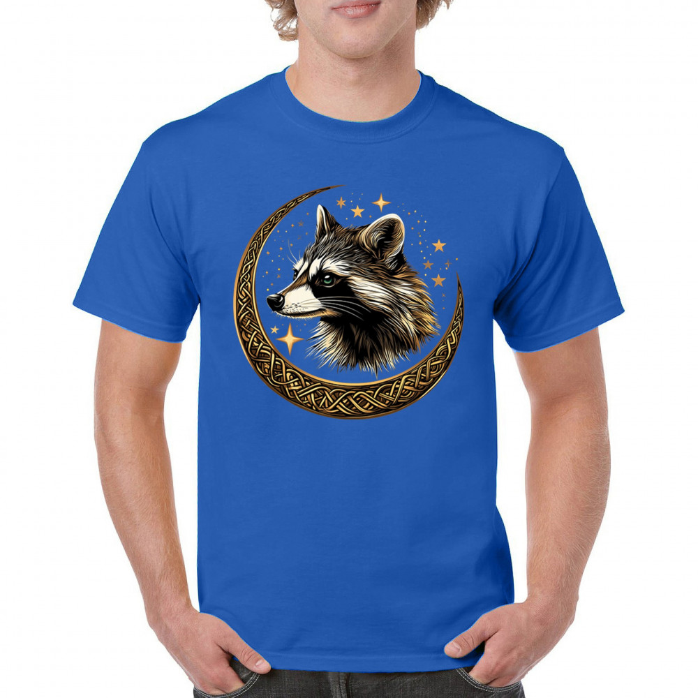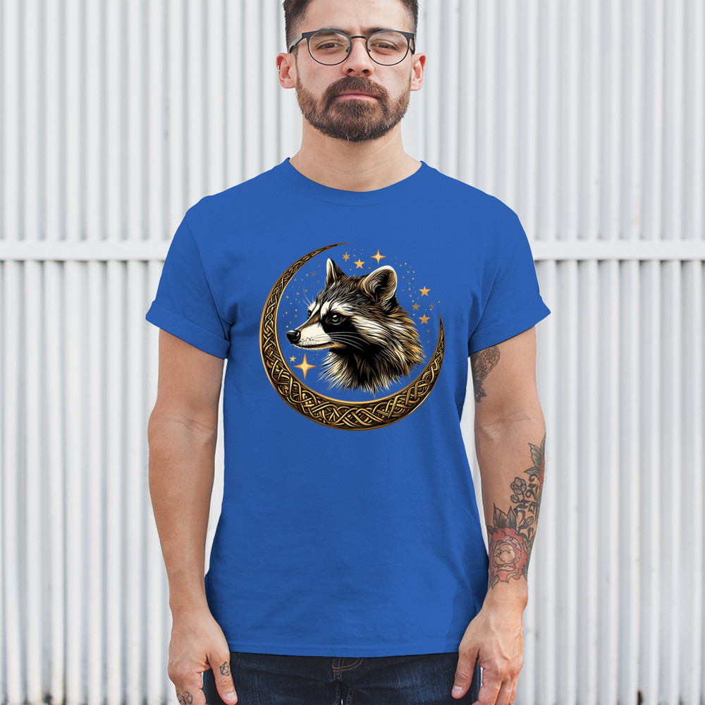 Cosmic raccoon design in Celtic moon. Symbol of adaptability, mystery, and spiritual intelligence. A perfect gift for wild and curious souls.