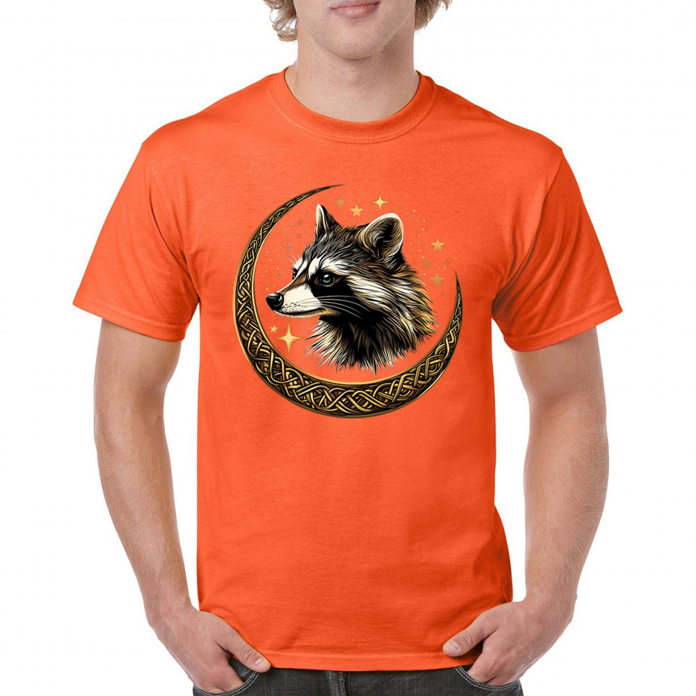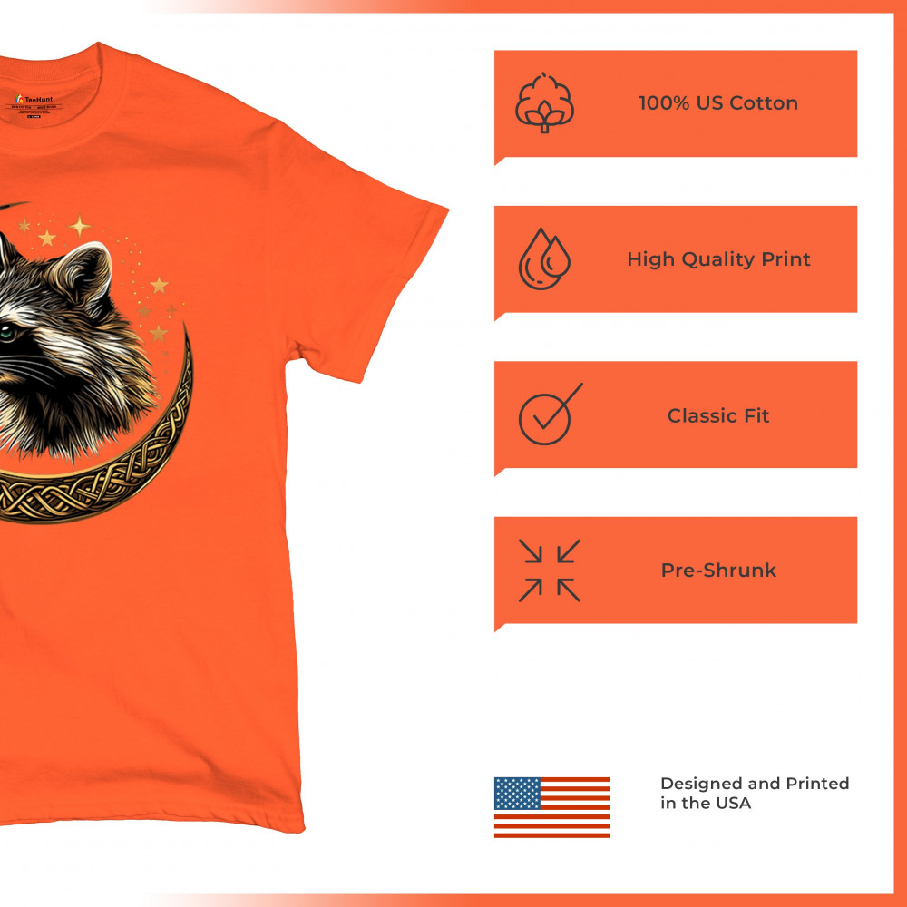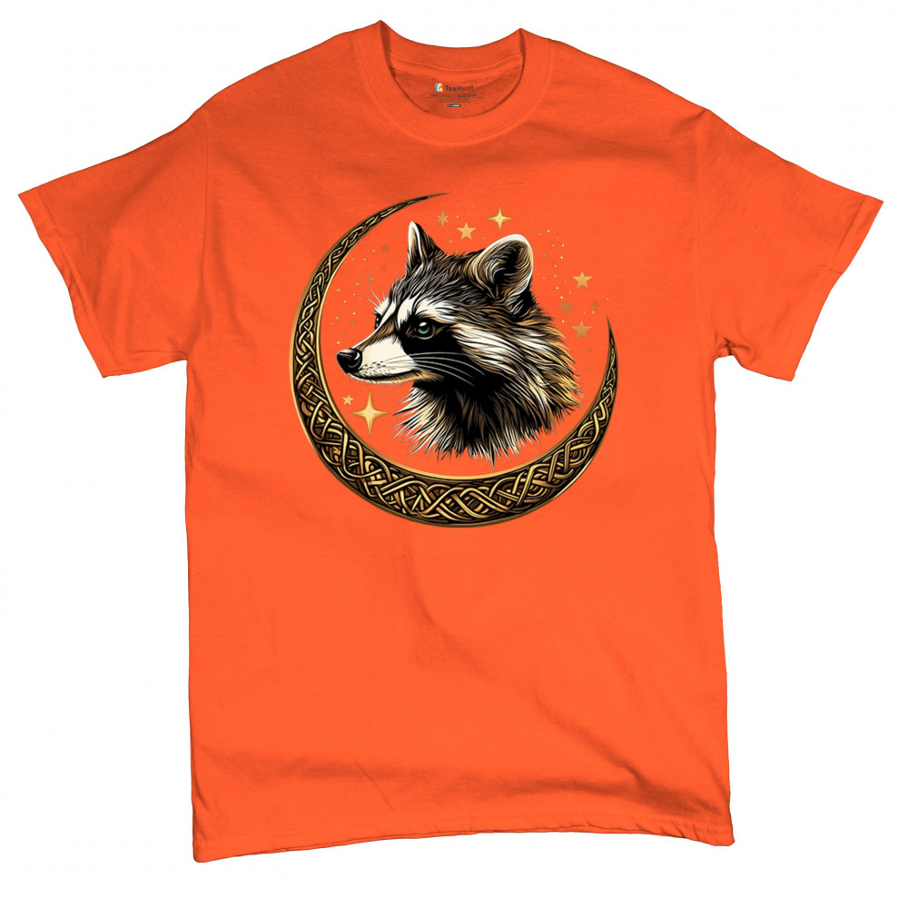 Cosmic raccoon design in Celtic moon. Symbol of adaptability, mystery, and spiritual intelligence. A perfect gift for wild and curious souls.