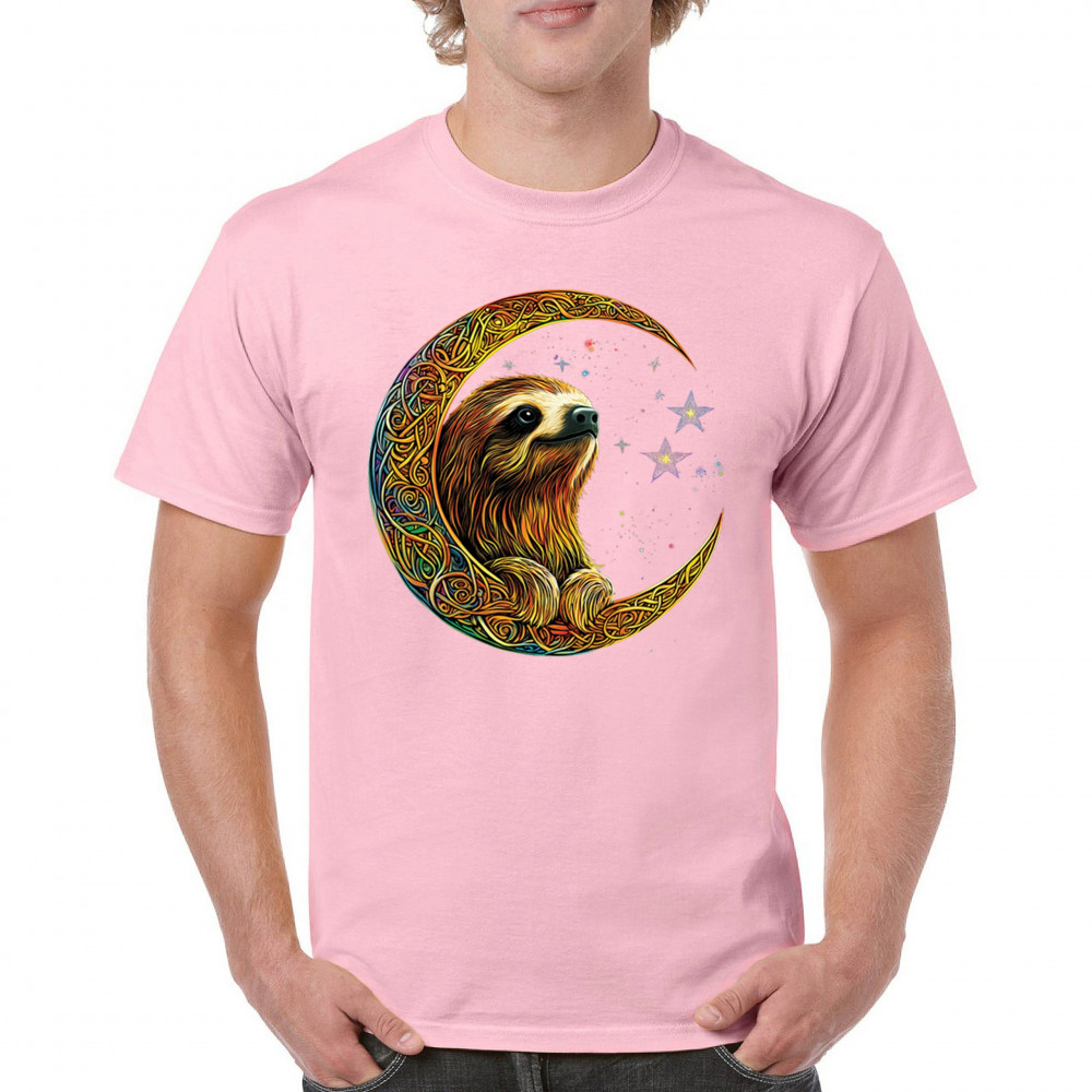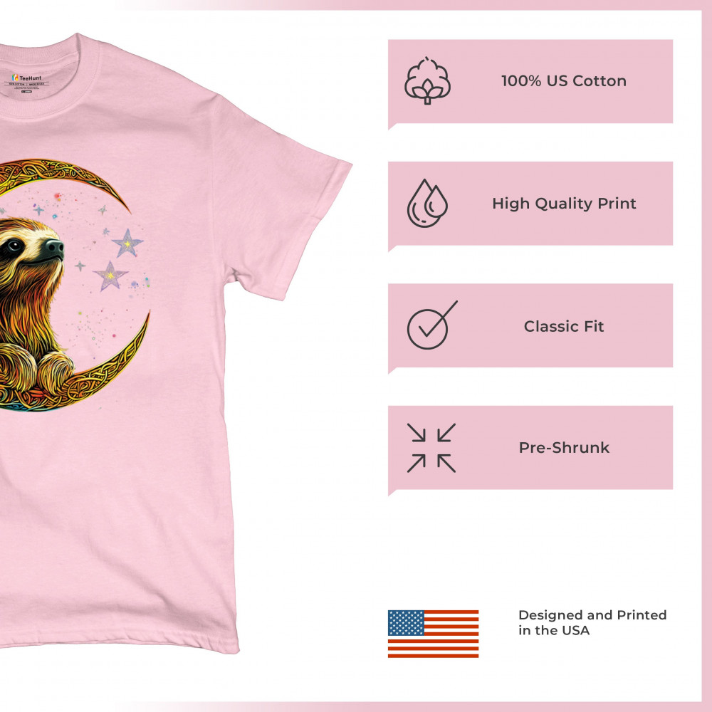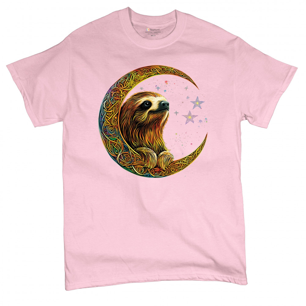 Celebrate peace and presence with this stunning sloth design cradled in a gold Celtic crescent moon. Surrounded by a vibrant starry sky, the image blends jungle whimsy with tribal patterns and mystical vibes. A perfect design for lovers of fantasy animals, mindfulness, and slow living. A beautiful tribute to spiritual stillness and cosmic calm.