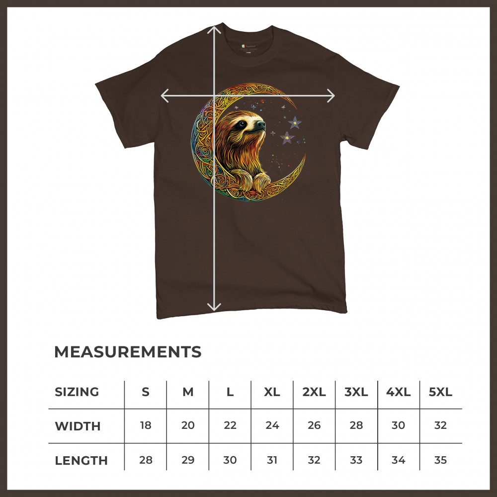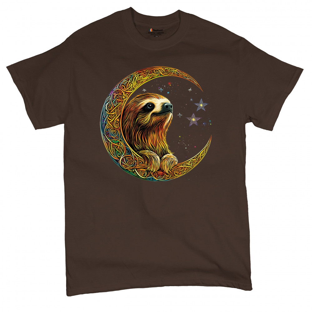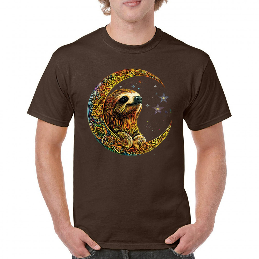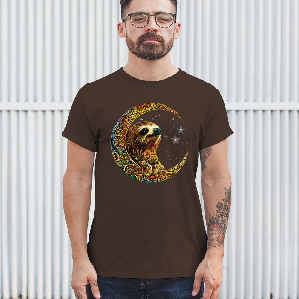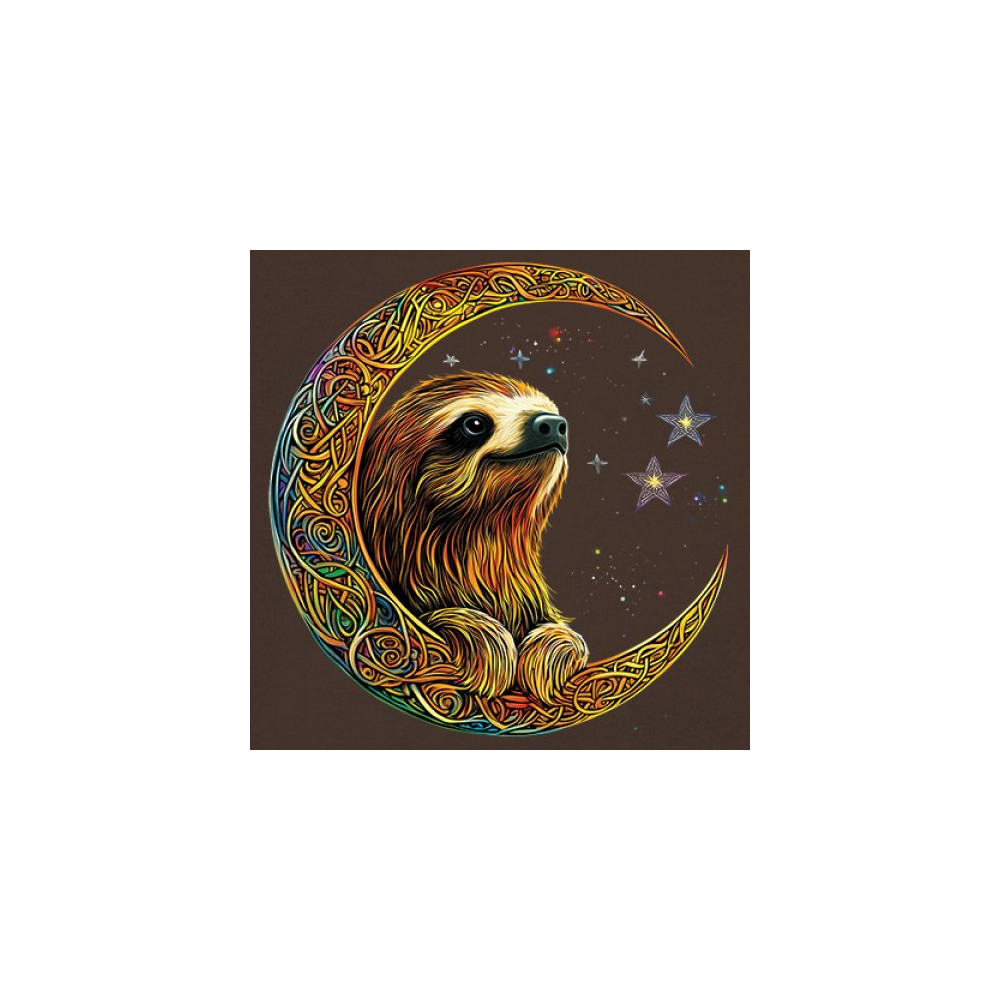 Celebrate peace and presence with this stunning sloth design cradled in a gold Celtic crescent moon. Surrounded by a vibrant starry sky, the image blends jungle whimsy with tribal patterns and mystical vibes. A perfect design for lovers of fantasy animals, mindfulness, and slow living. A beautiful tribute to spiritual stillness and cosmic calm.