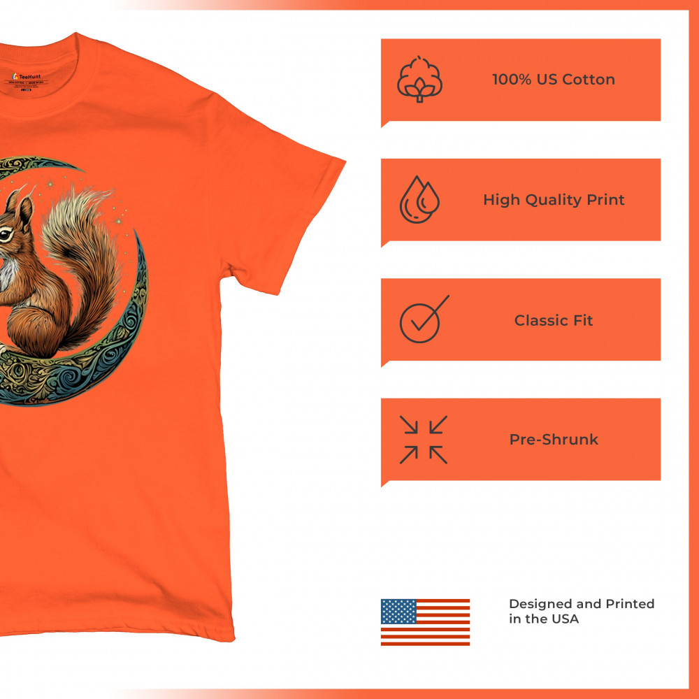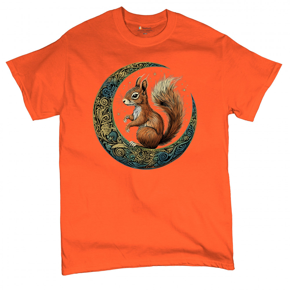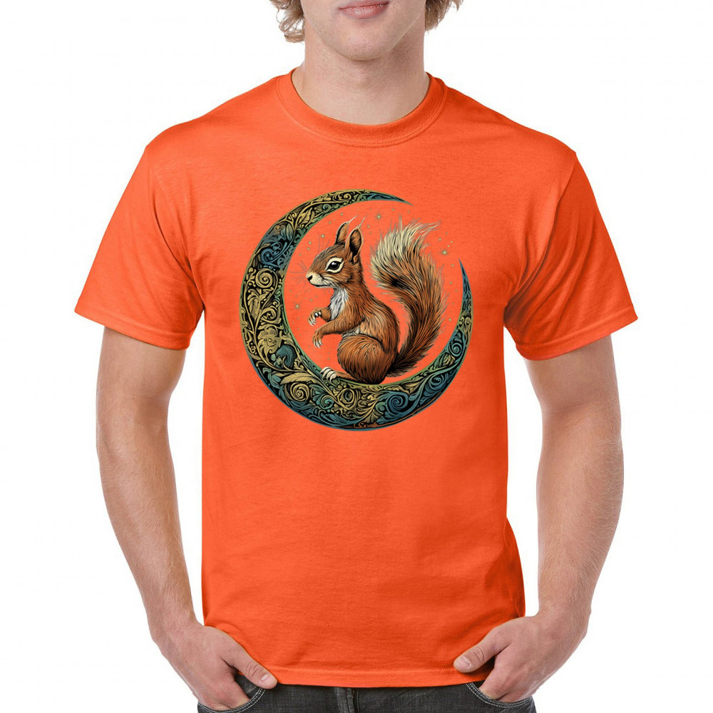 Celebrate agility, awareness, and forest wisdom with this magical red squirrel design. Nestled in a green-gold Celtic crescent moon and backed by a starry cosmic sky, this piece merges natural energy with tribal patterns and celestial wonder. A unique design for animal spirit believers, forest wanderers, and fantasy nature fans.