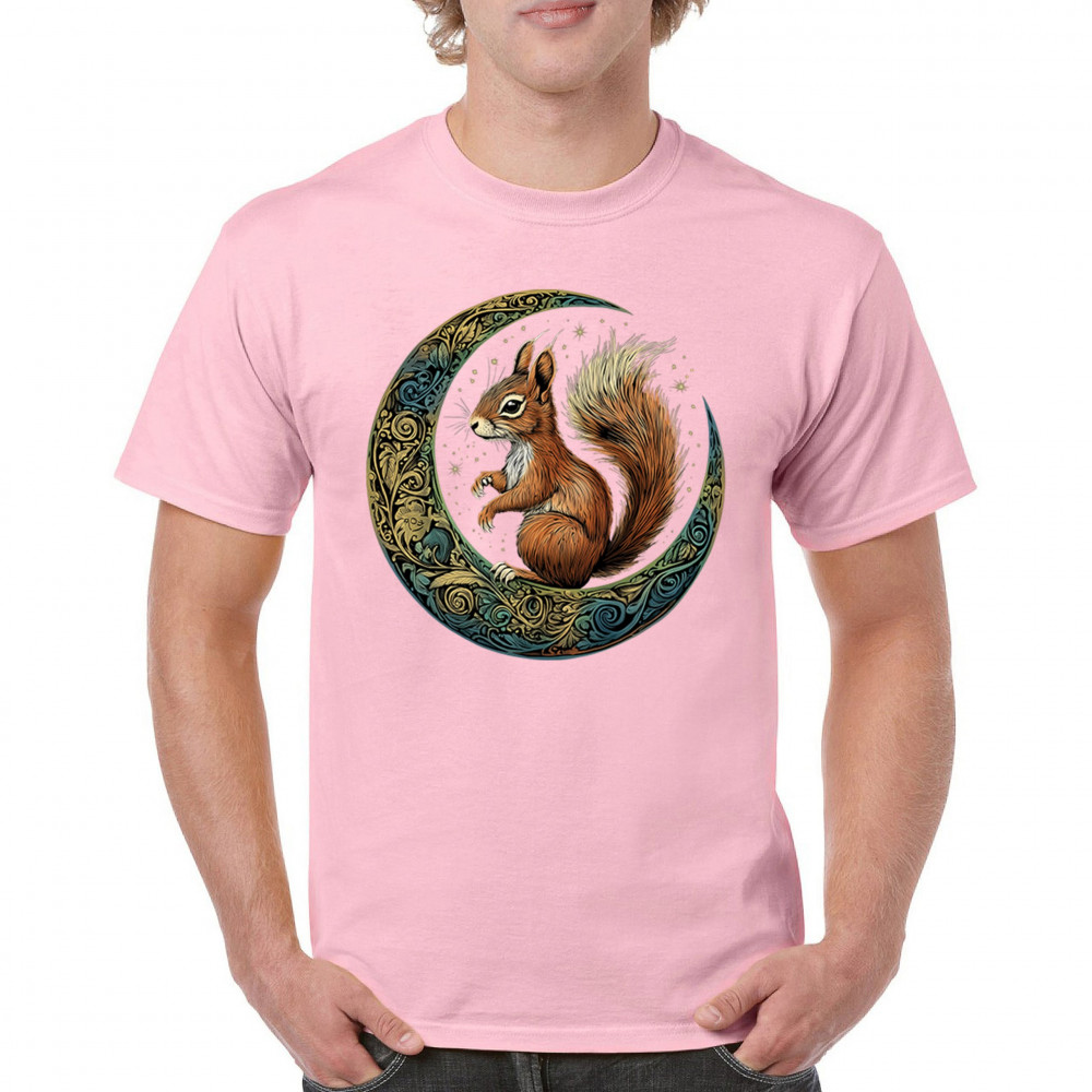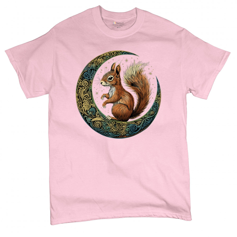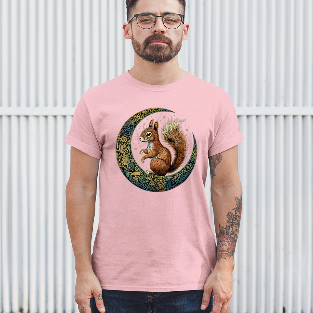 Celebrate agility, awareness, and forest wisdom with this magical red squirrel design. Nestled in a green-gold Celtic crescent moon and backed by a starry cosmic sky, this piece merges natural energy with tribal patterns and celestial wonder. A unique design for animal spirit believers, forest wanderers, and fantasy nature fans.