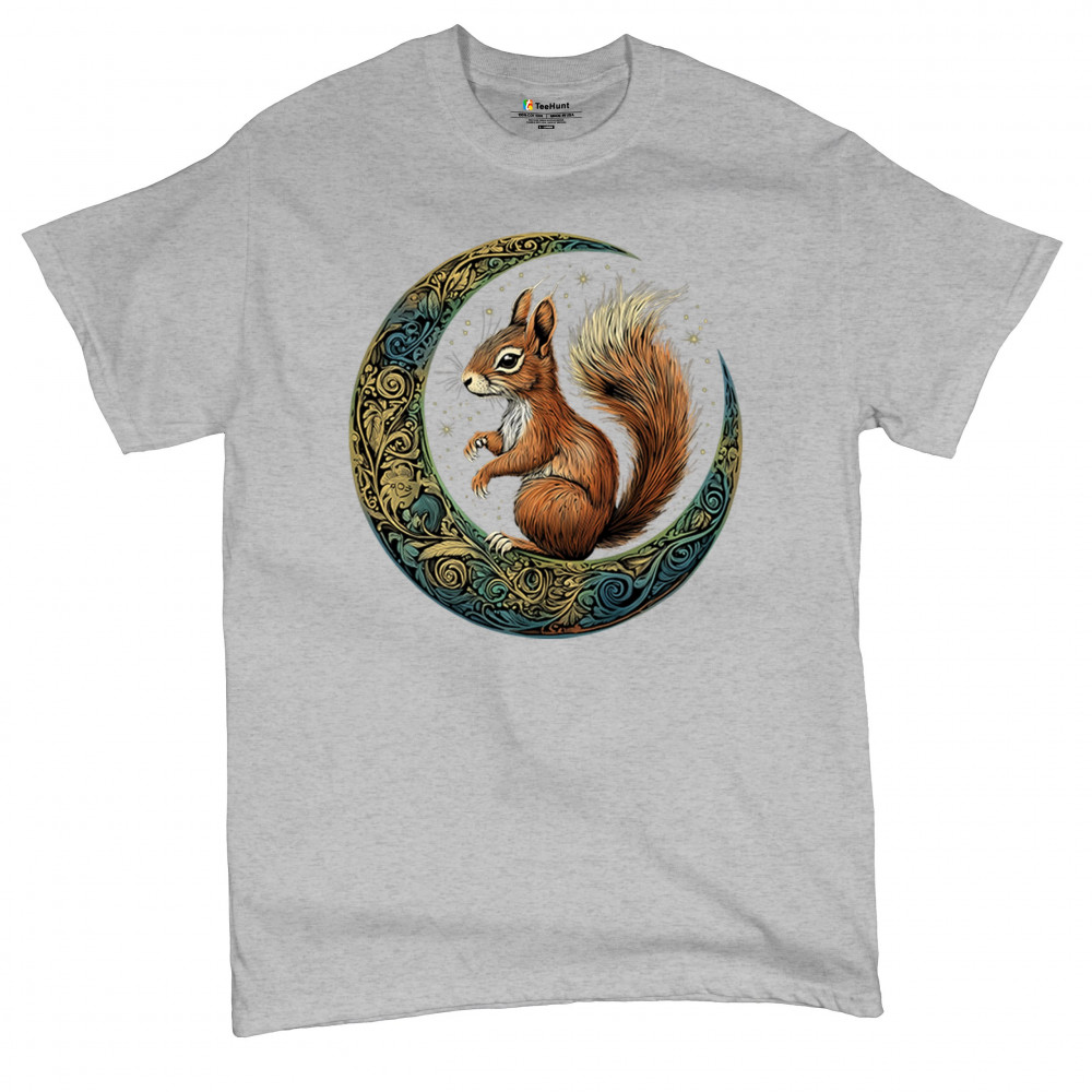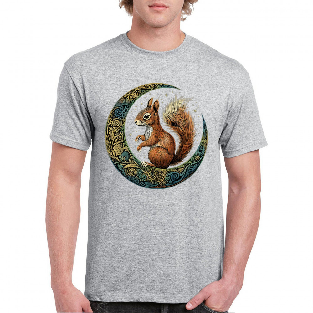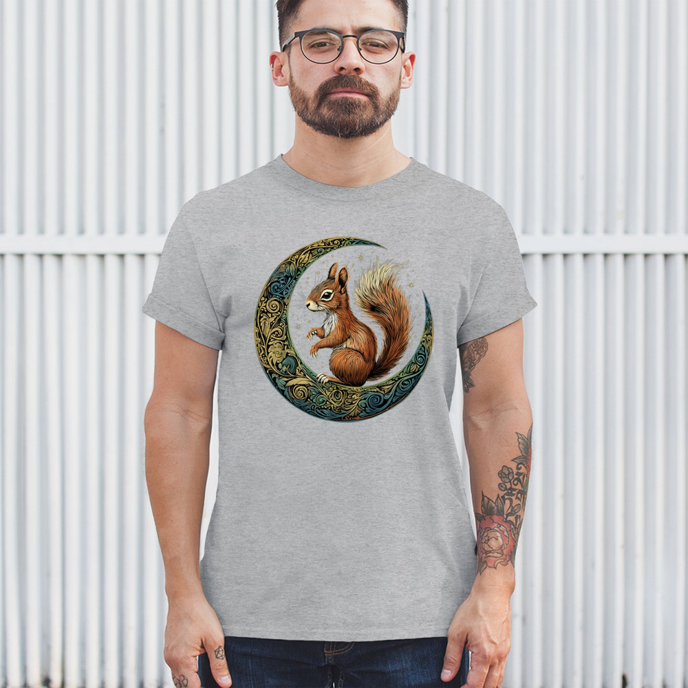 Celebrate agility, awareness, and forest wisdom with this magical red squirrel design. Nestled in a green-gold Celtic crescent moon and backed by a starry cosmic sky, this piece merges natural energy with tribal patterns and celestial wonder. A unique design for animal spirit believers, forest wanderers, and fantasy nature fans.