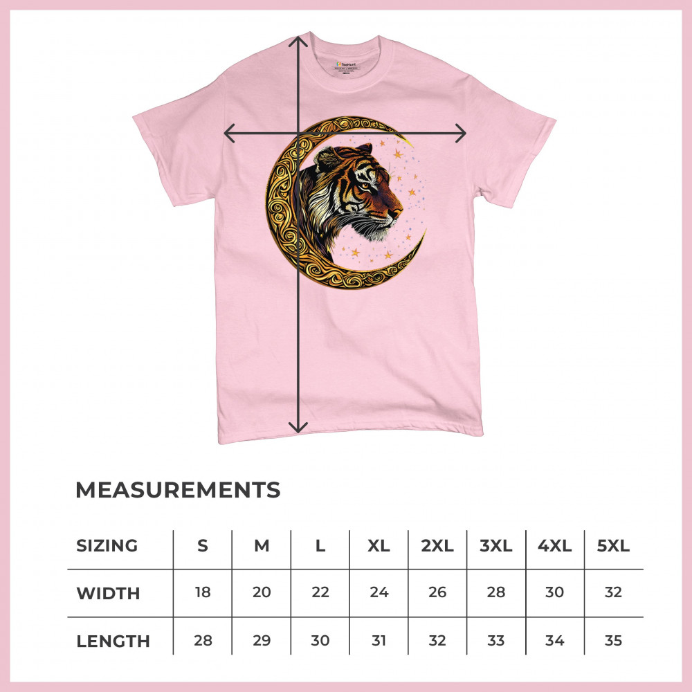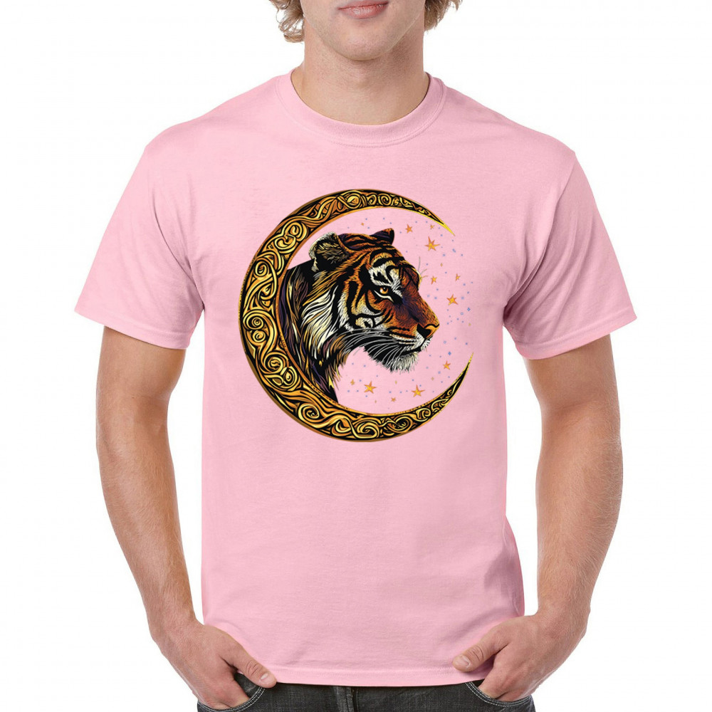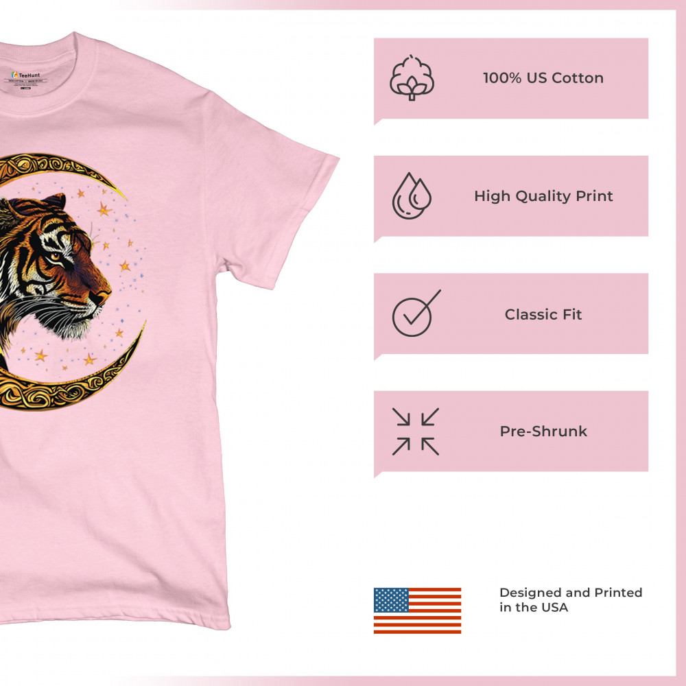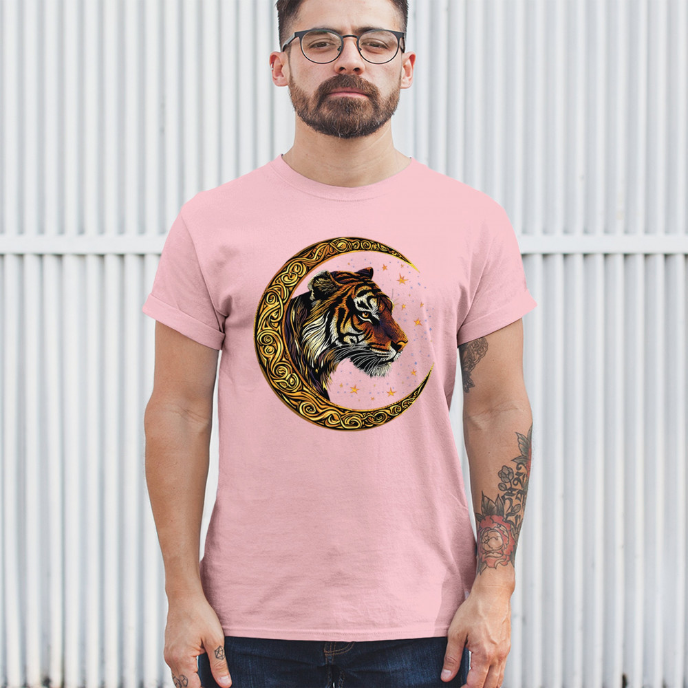 Bold tiger design in Celtic moon with cosmic sky. Symbol of strength, instinct, and jungle mysticism. Great for animal lovers and fantasy fans.
