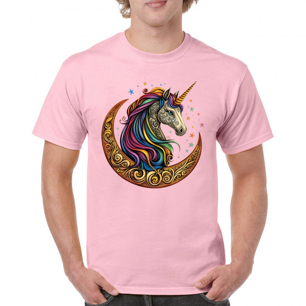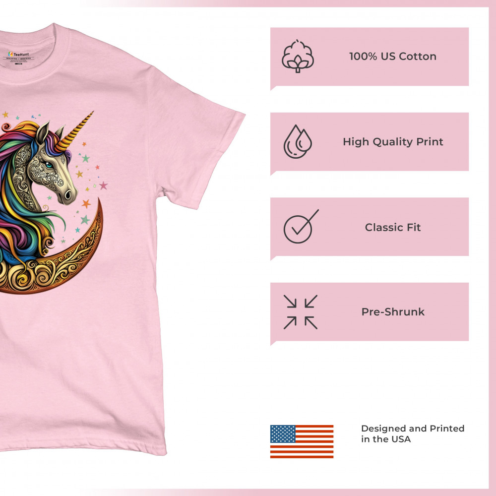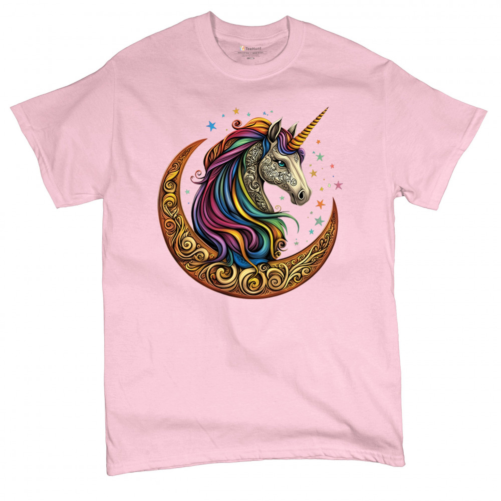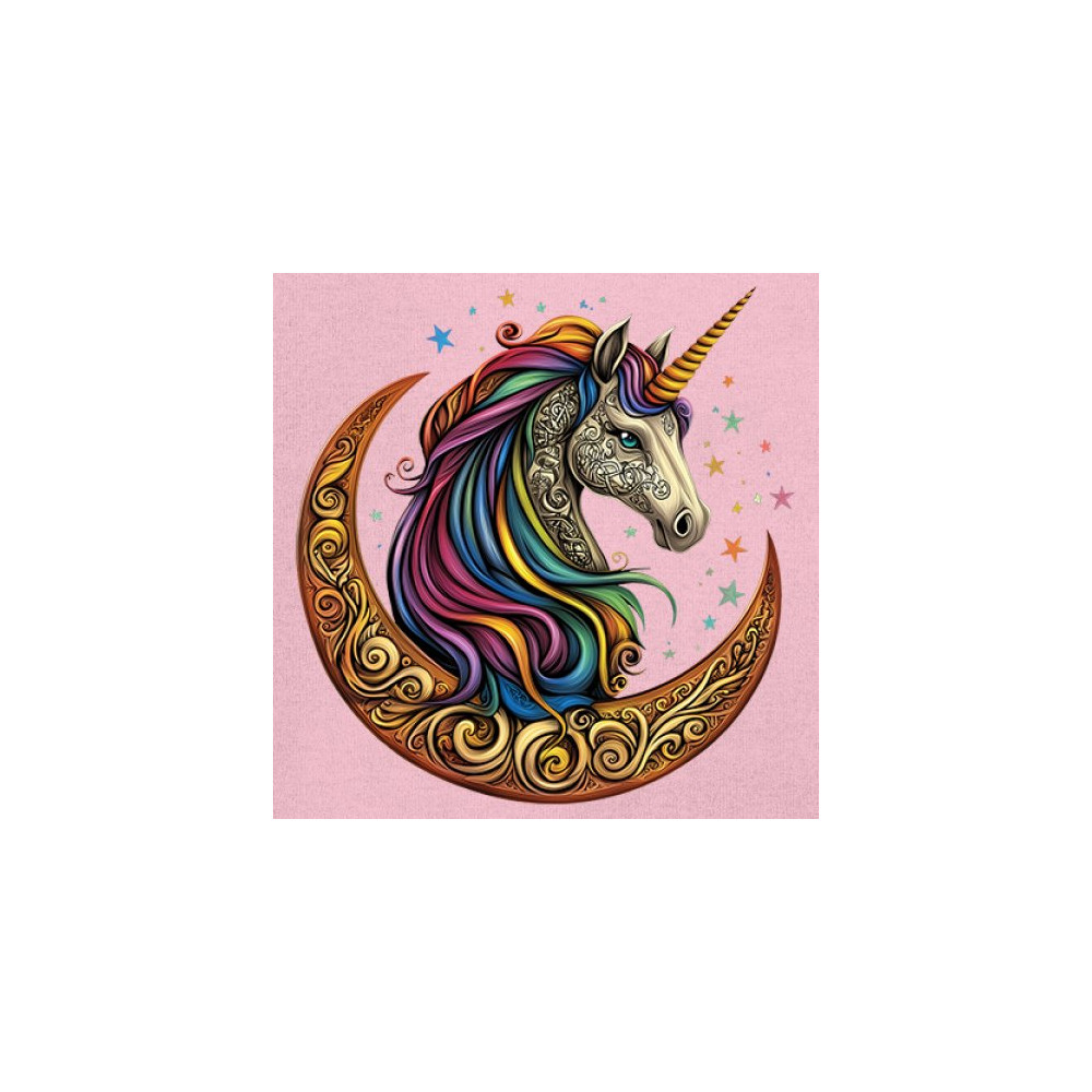 Rainbow-maned unicorn in golden Celtic moon design—perfect for fantasy lovers, dreamers, and unicorn fans who believe in magic and spirit.
