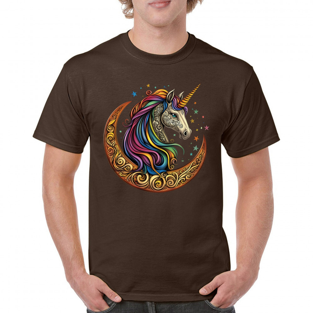 Rainbow-maned unicorn in golden Celtic moon design—perfect for fantasy lovers, dreamers, and unicorn fans who believe in magic and spirit.