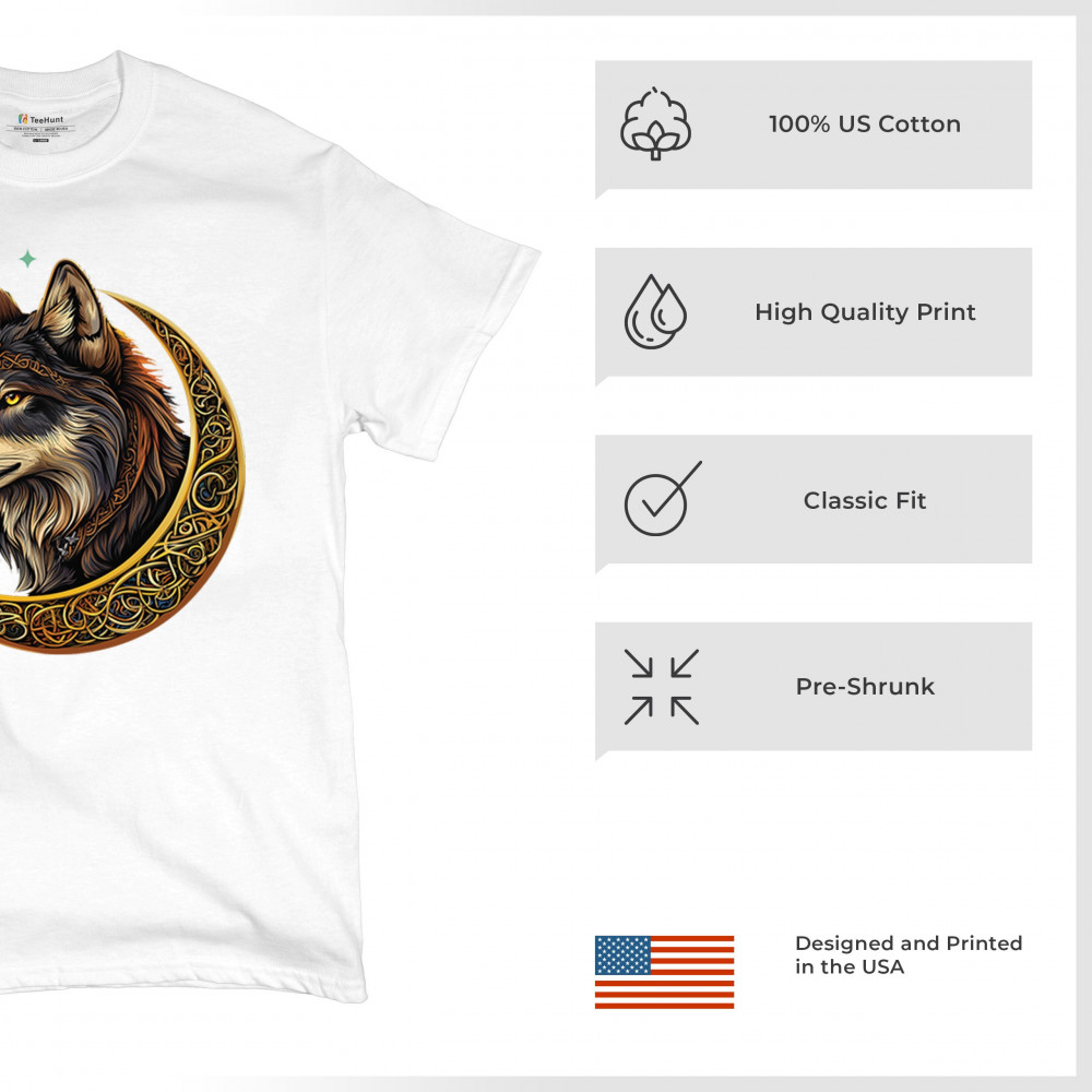 Celtic wolf design in a glowing crescent moon. Symbolizes loyalty, mysticism, and wild energy. Great for fantasy fans and spirit animal seekers.