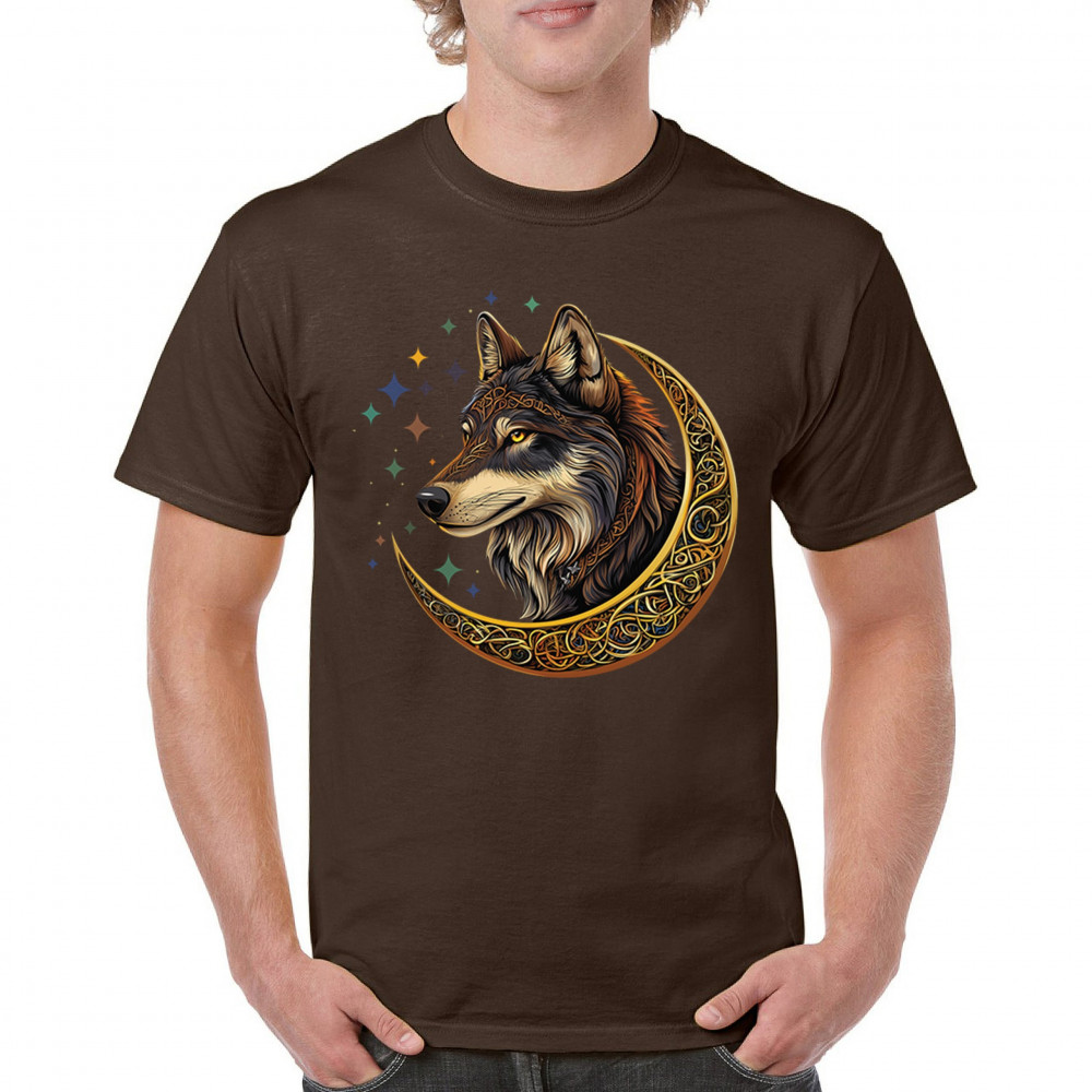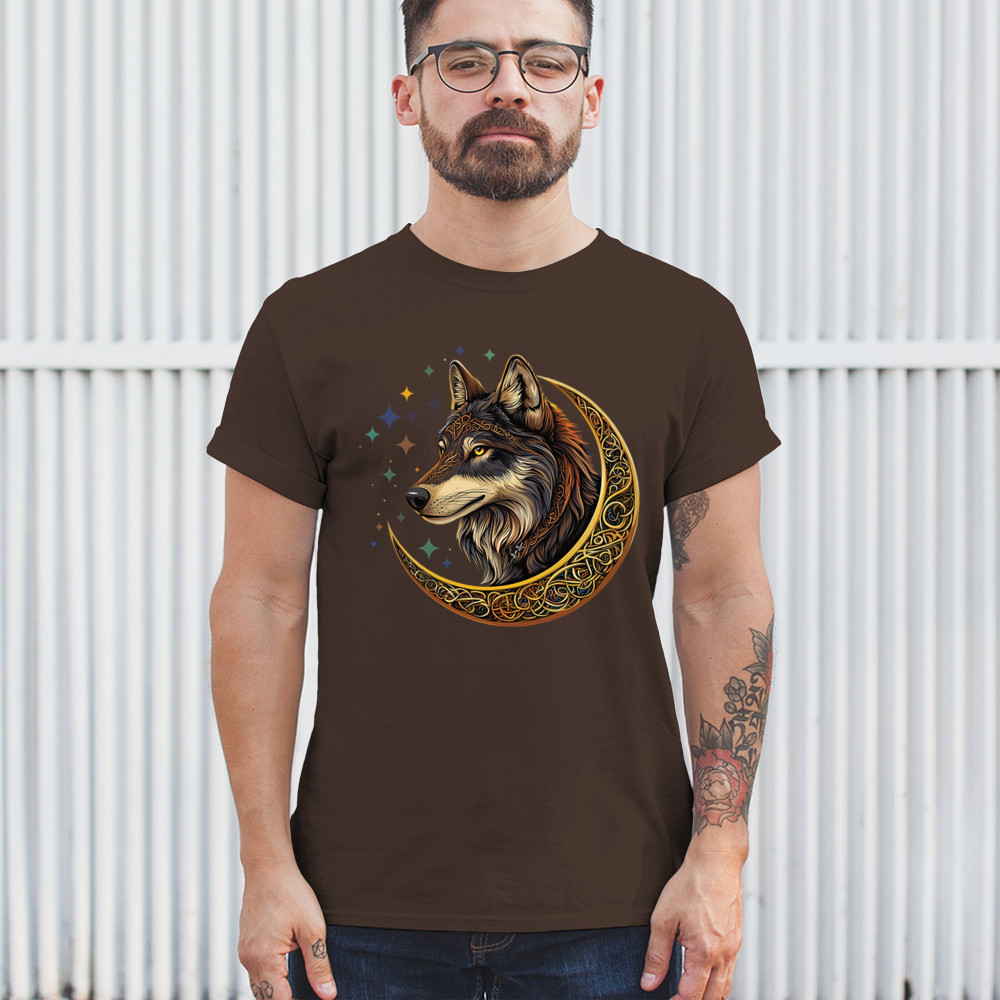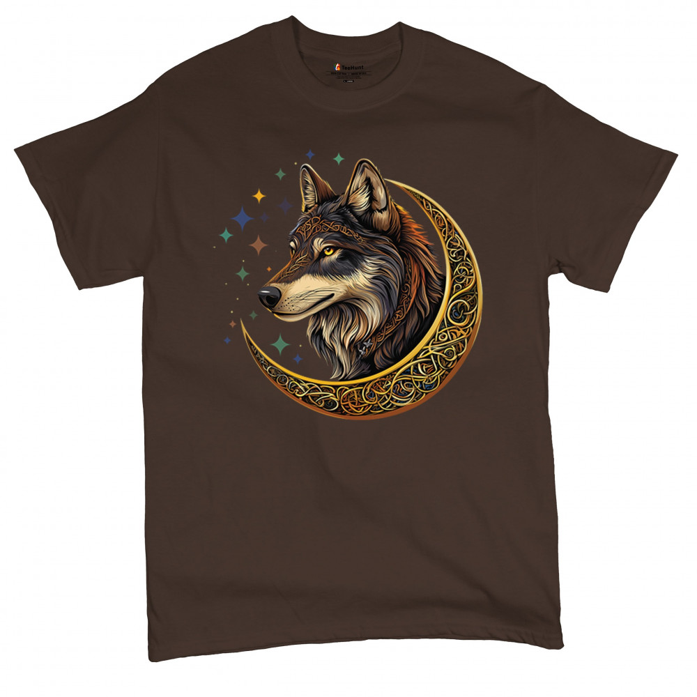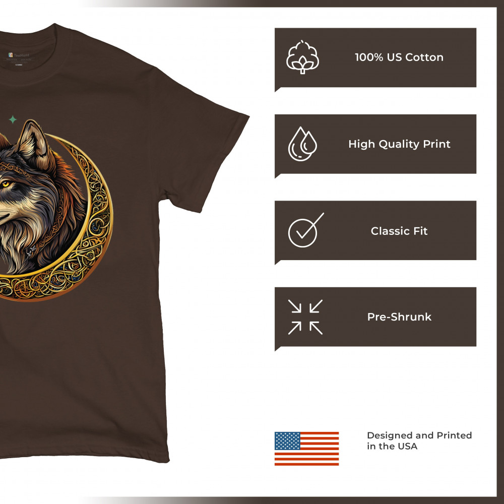 Celtic wolf design in a glowing crescent moon. Symbolizes loyalty, mysticism, and wild energy. Great for fantasy fans and spirit animal seekers.