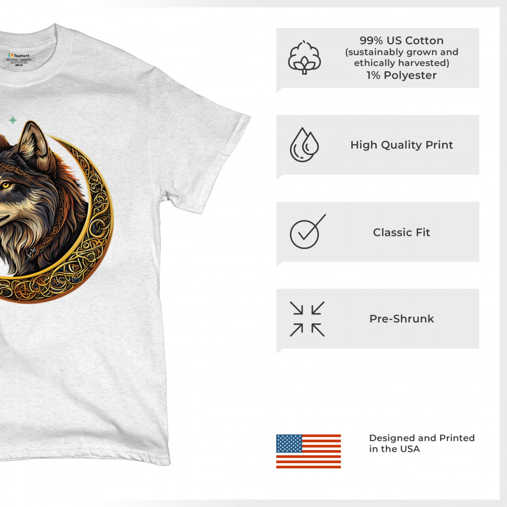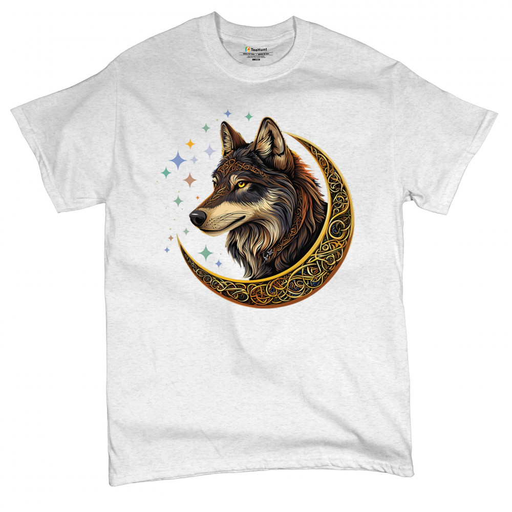 Celtic wolf design in a glowing crescent moon. Symbolizes loyalty, mysticism, and wild energy. Great for fantasy fans and spirit animal seekers.