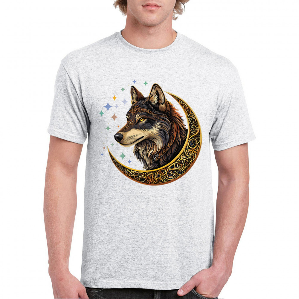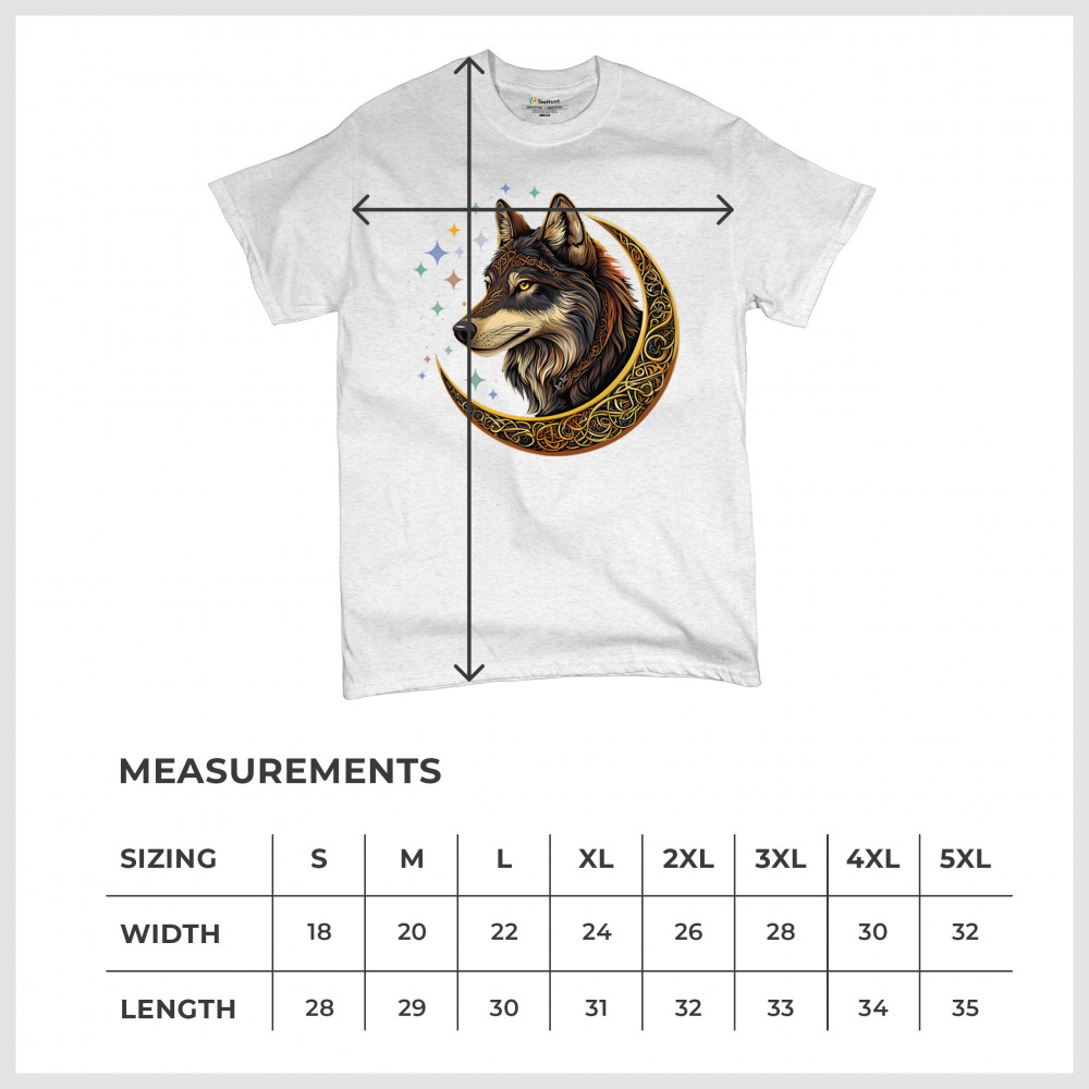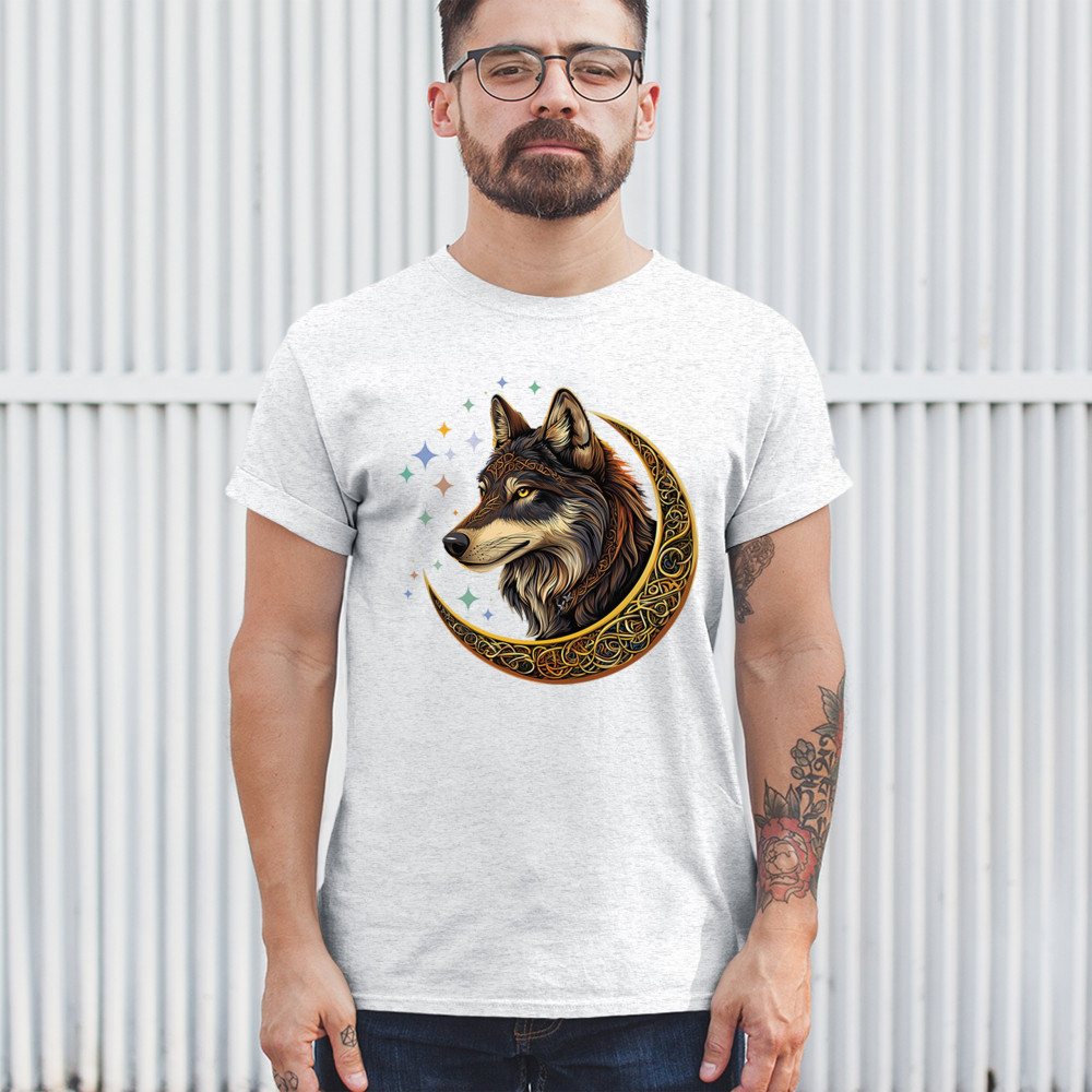 Powerful and wise, this Celtic wolf design is surrounded by a glowing golden crescent moon and cosmic stars. A symbol of loyalty, intuition, and spiritual guidance, this design is perfect for wolf lovers, fantasy fans, and tribal art enthusiasts. A bold celebration of wilderness mysticism and soul-deep strength.