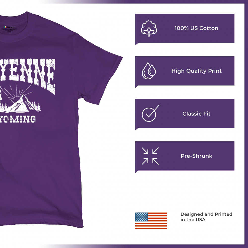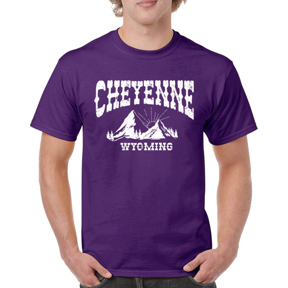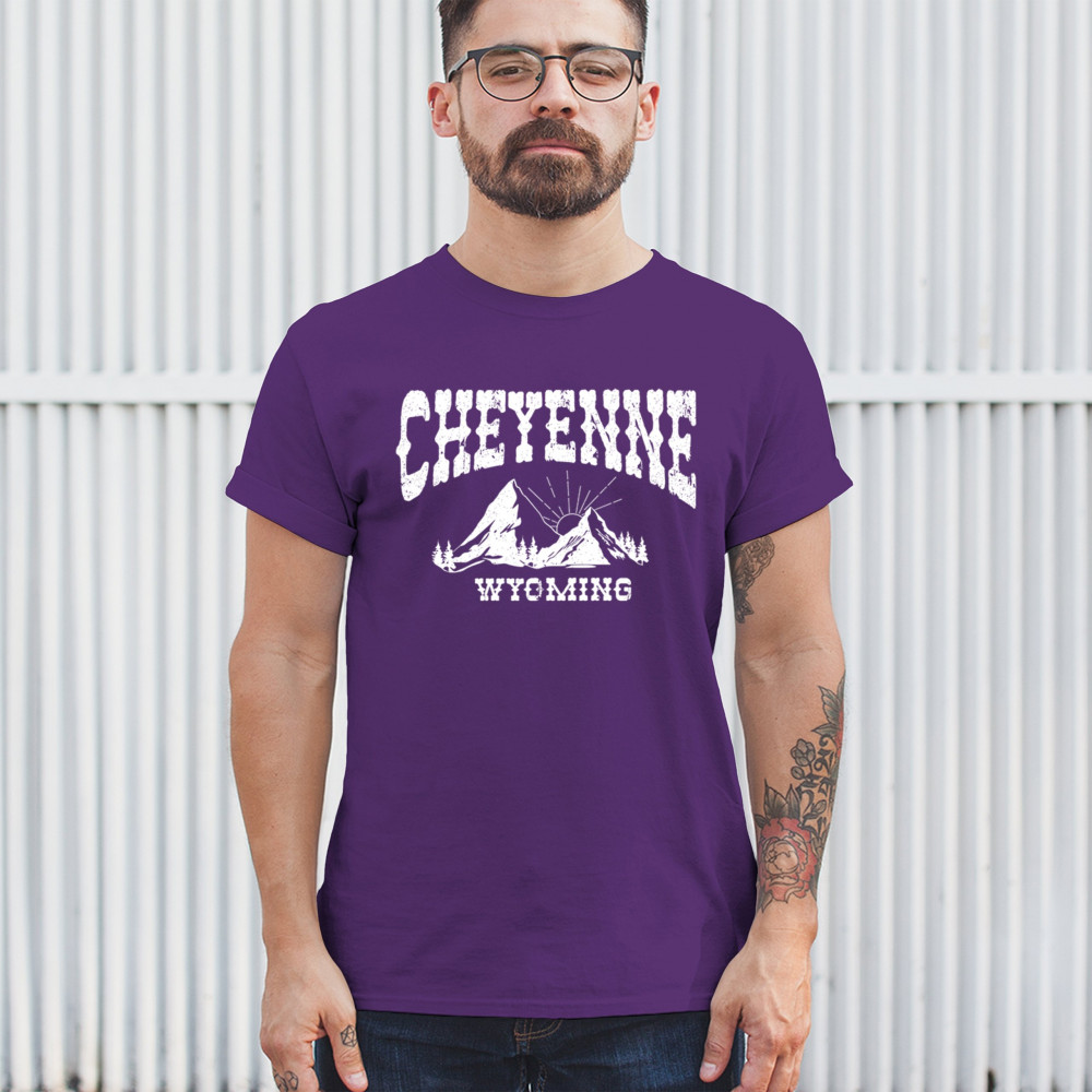 Vintage Cheyenne Wyoming design with mountain sunrise for outdoor lovers and locals. Perfect for travel, hiking, or Western pride.