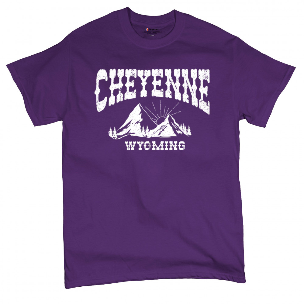 Celebrate Wyoming's beauty with this Cheyenne mountain sunrise design. Featuring vintage-style mountain scenery and Western font, it captures the essence of local pride and rugged outdoor adventure. Perfect for travelers, hikers, or anyone who loves the Western landscape.