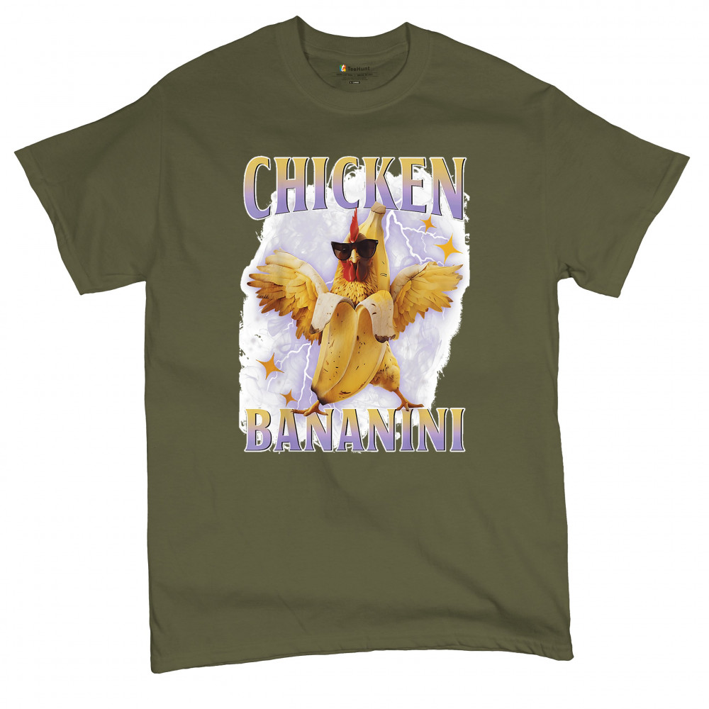 Chicken Bananini is meme absurdity with extra peel. Featuring a chicken emerging from a banana and rocking shades, this design blends cursed-core fashion, viral animal humor, Gen Z brainrot, and TikTok-style chaos. A must-have for fans of ironic mashups, surreal creatures, and internet-fueled nonsense.