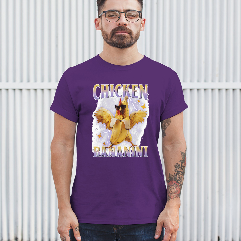 Chicken Bananini is meme absurdity with extra peel. Featuring a chicken emerging from a banana and rocking shades, this design blends cursed-core fashion, viral animal humor, Gen Z brainrot, and TikTok-style chaos. A must-have for fans of ironic mashups, surreal creatures, and internet-fueled nonsense.