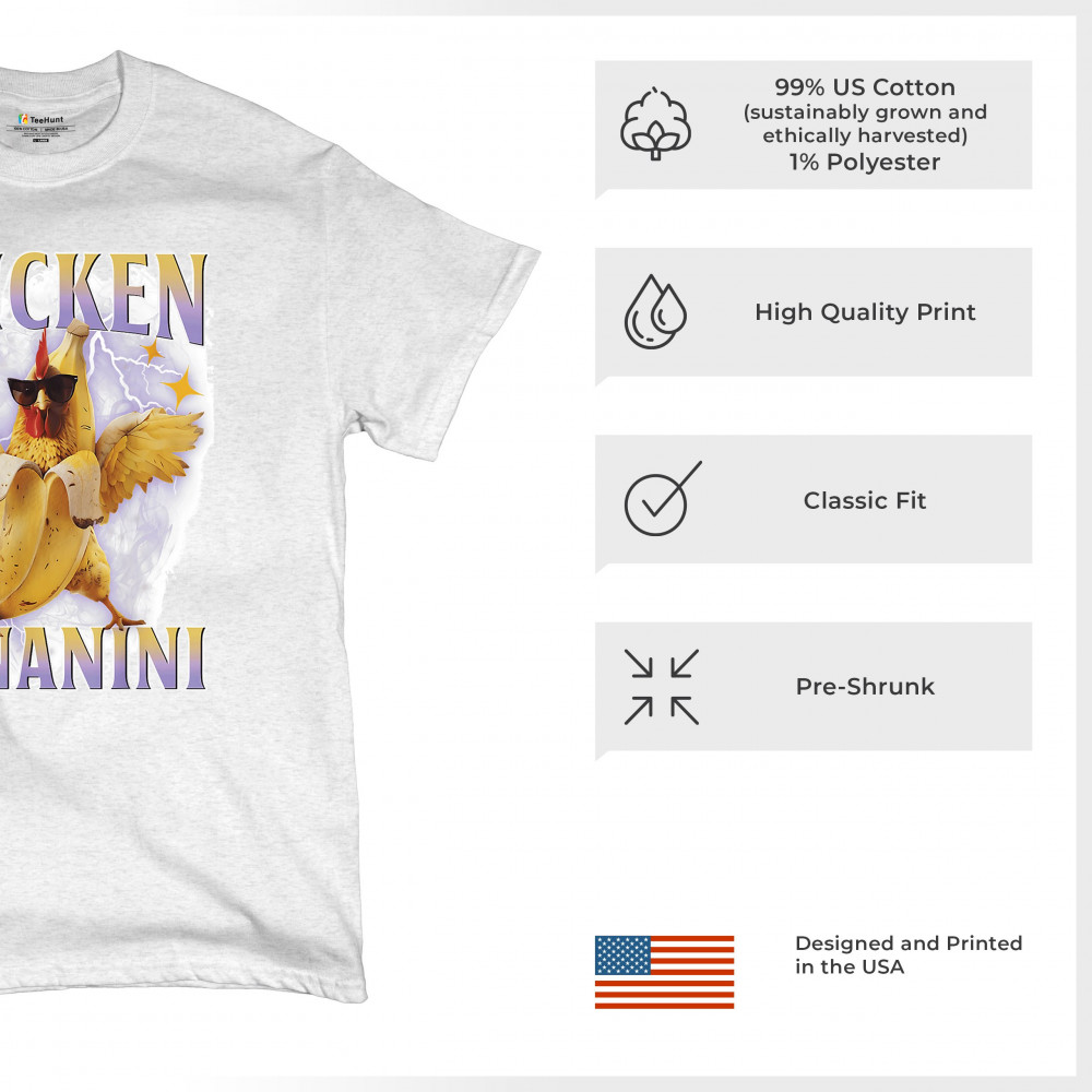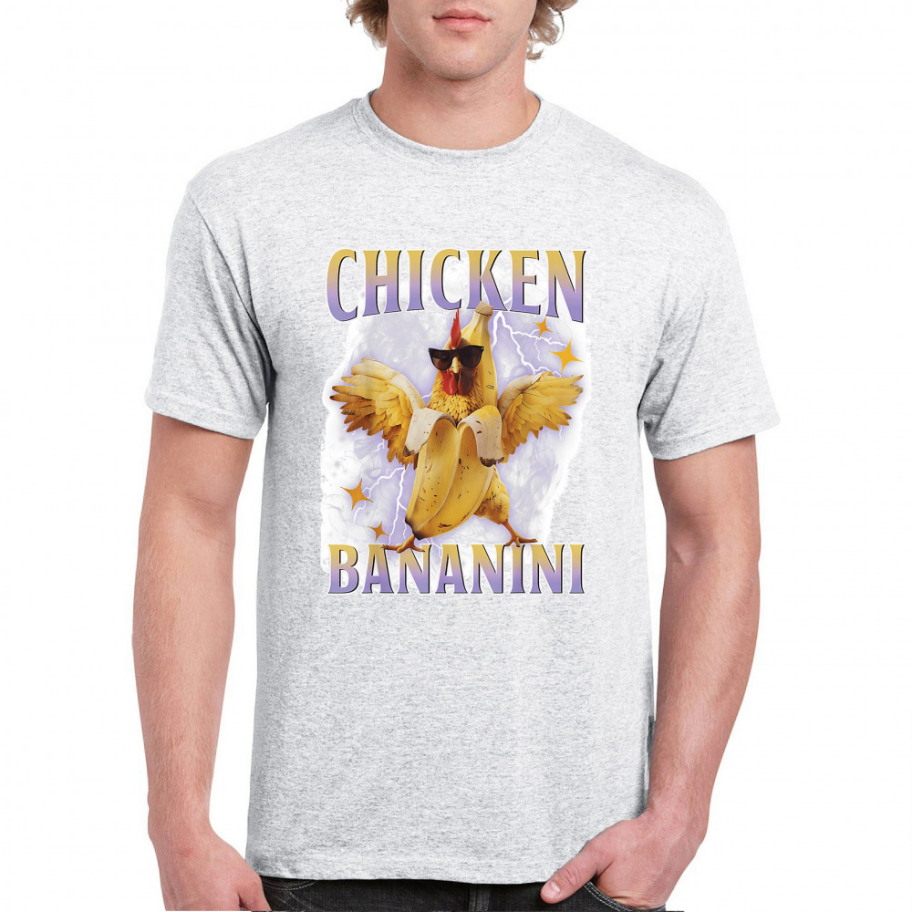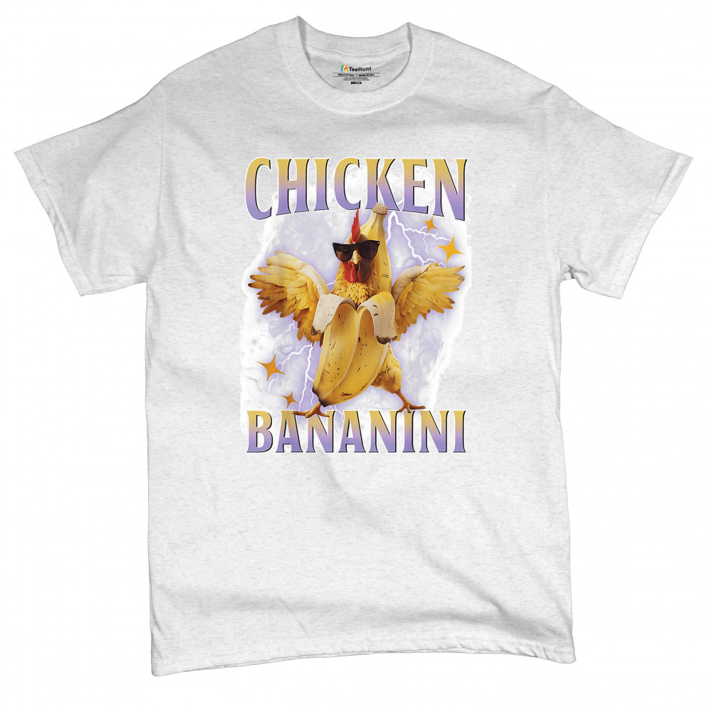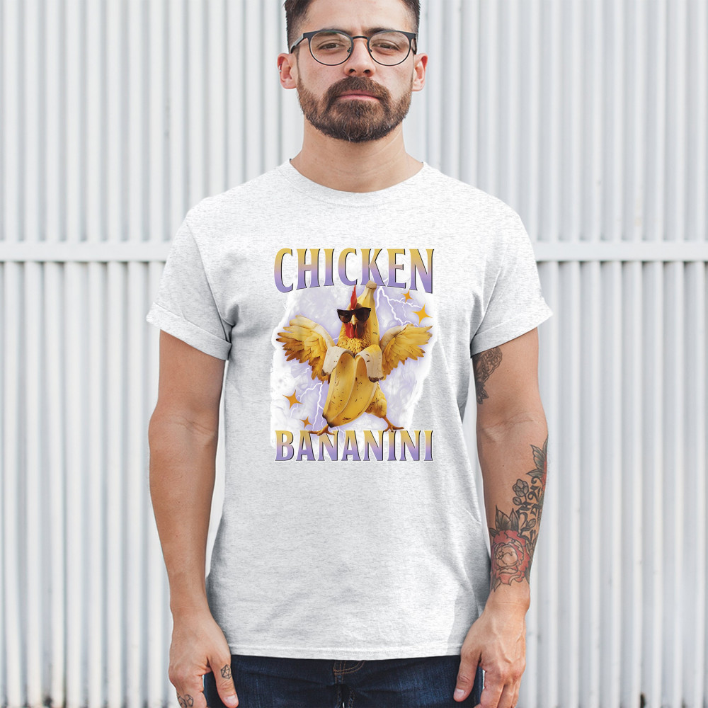 Chicken Bananini is meme absurdity with extra peel. Featuring a chicken emerging from a banana and rocking shades, this design blends cursed-core fashion, viral animal humor, Gen Z brainrot, and TikTok-style chaos. A must-have for fans of ironic mashups, surreal creatures, and internet-fueled nonsense.