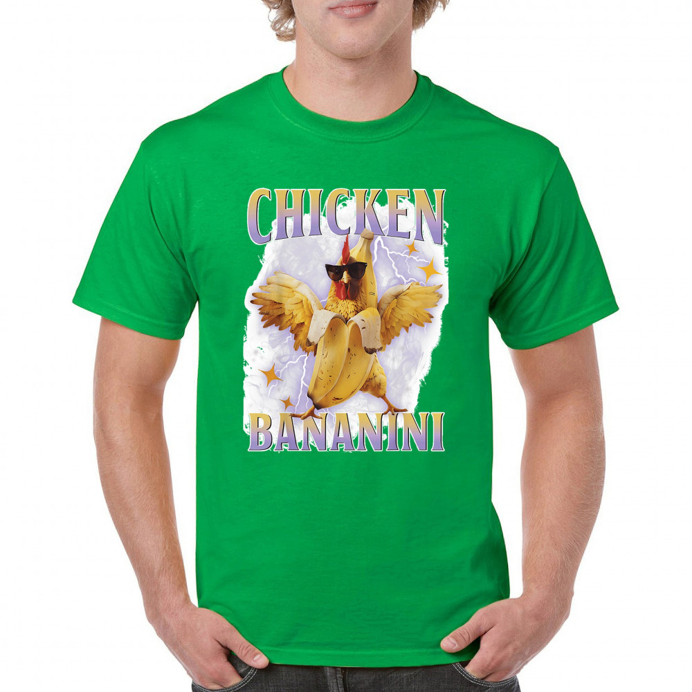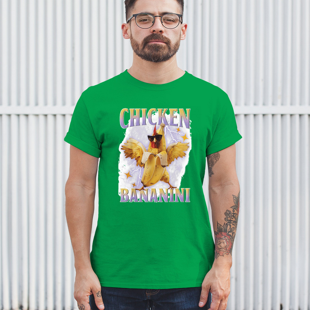 Chicken Bananini is meme absurdity with extra peel. Featuring a chicken emerging from a banana and rocking shades, this design blends cursed-core fashion, viral animal humor, Gen Z brainrot, and TikTok-style chaos. A must-have for fans of ironic mashups, surreal creatures, and internet-fueled nonsense.