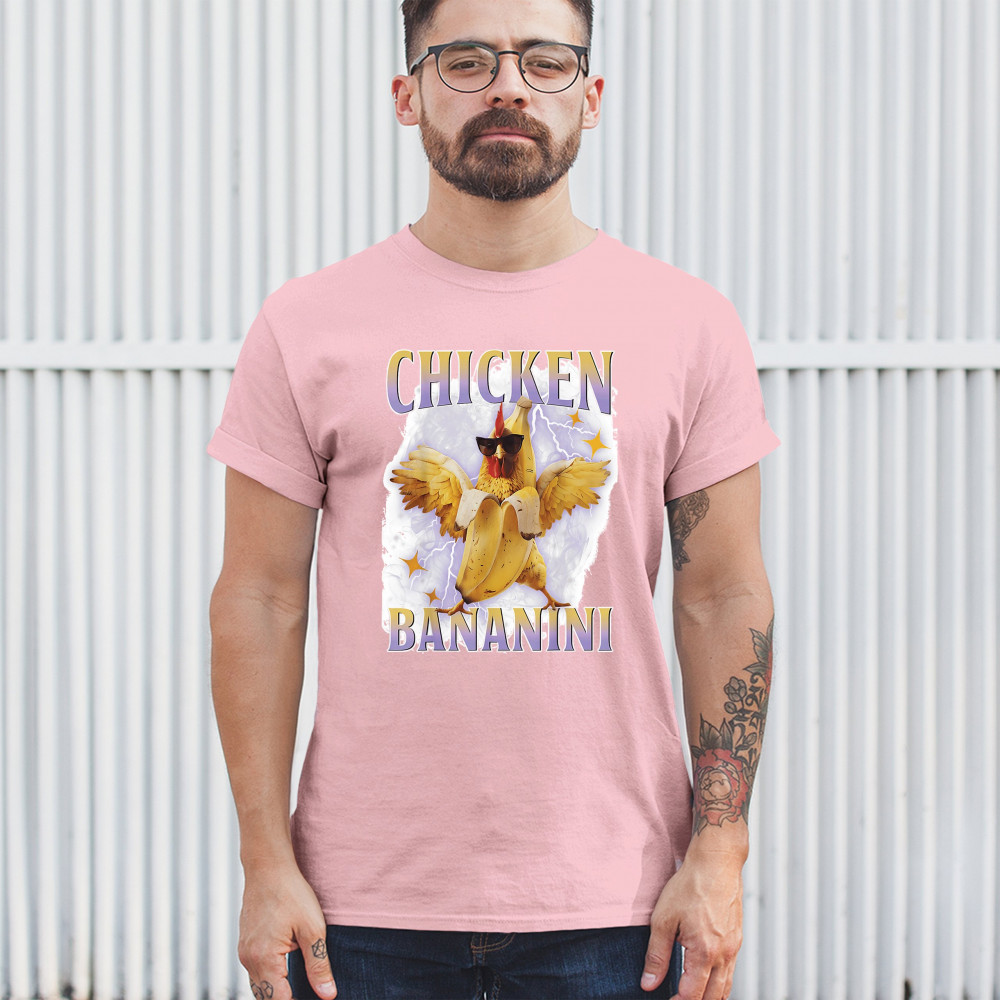 Chicken Bananini is meme absurdity with extra peel. Featuring a chicken emerging from a banana and rocking shades, this design blends cursed-core fashion, viral animal humor, Gen Z brainrot, and TikTok-style chaos. A must-have for fans of ironic mashups, surreal creatures, and internet-fueled nonsense.